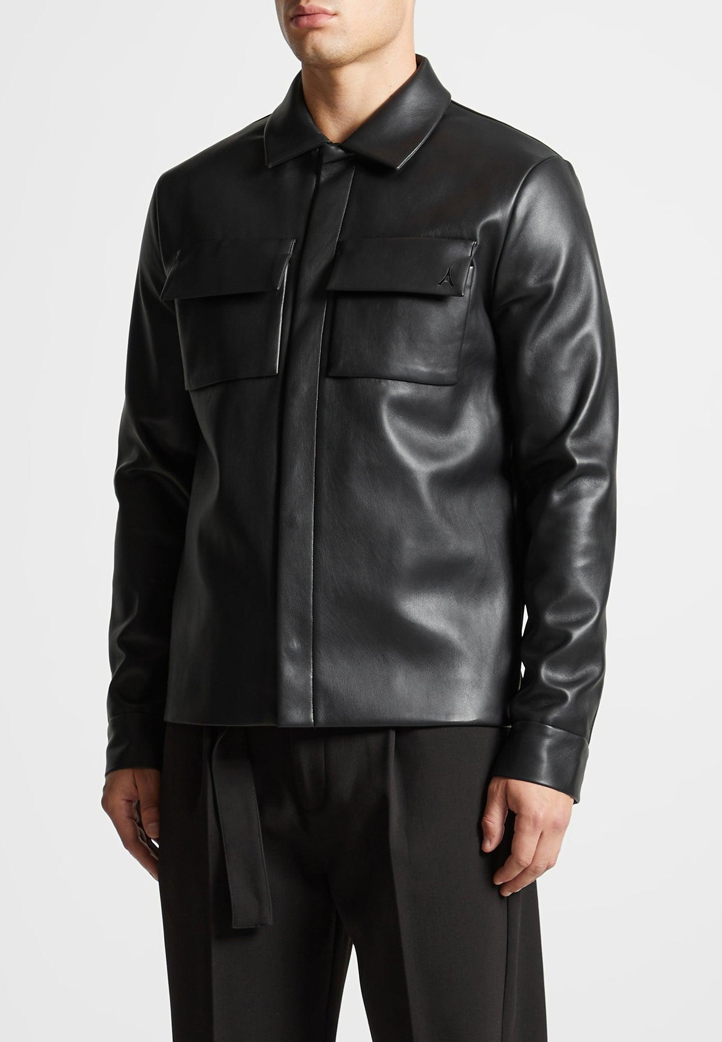 This Vegan Leather Shirt Jacket is the perfect blend of style and practicality. Its heavy-weight construction provides a long-lasting and durable wear. It is perfect for cooler weather and pairs perfectly with our Belted Trousers. Vegan Leather FabricLong Sleeve SilhouettePockets to FrontMetal Popper Buttons to FrontMetal Popper Buttons to CuffsEmbroidered Manière De Voir Eiffel to FrontGunmetal Manière De Voir Eiffel Plaque to Back95% Polyester, 5% ElastaneAlways check the care label for wash instructions.