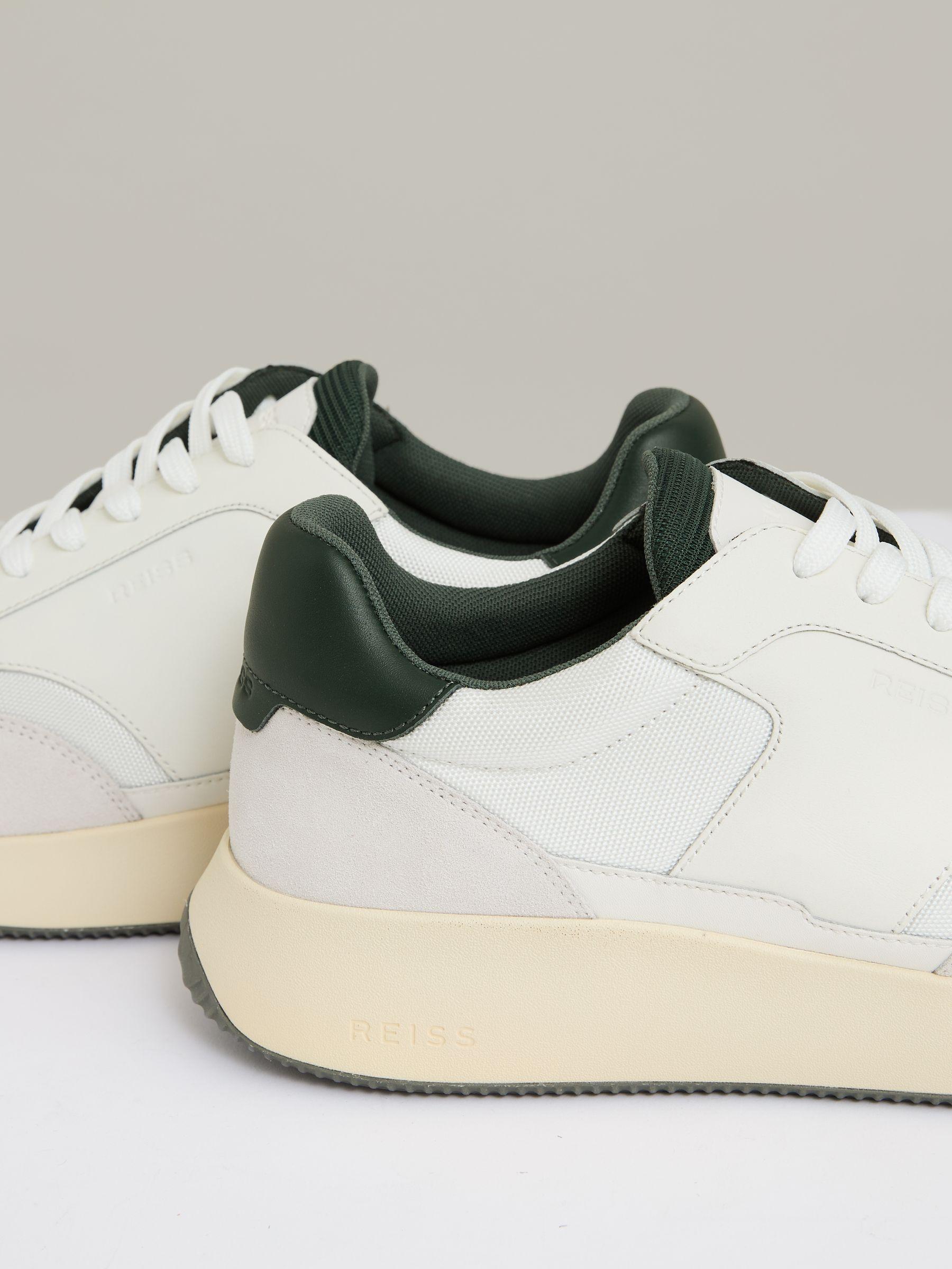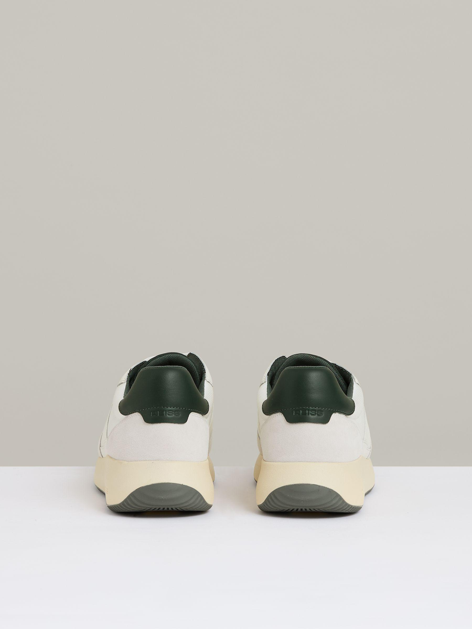 Leather Suede Running Trainers in Off White/Green