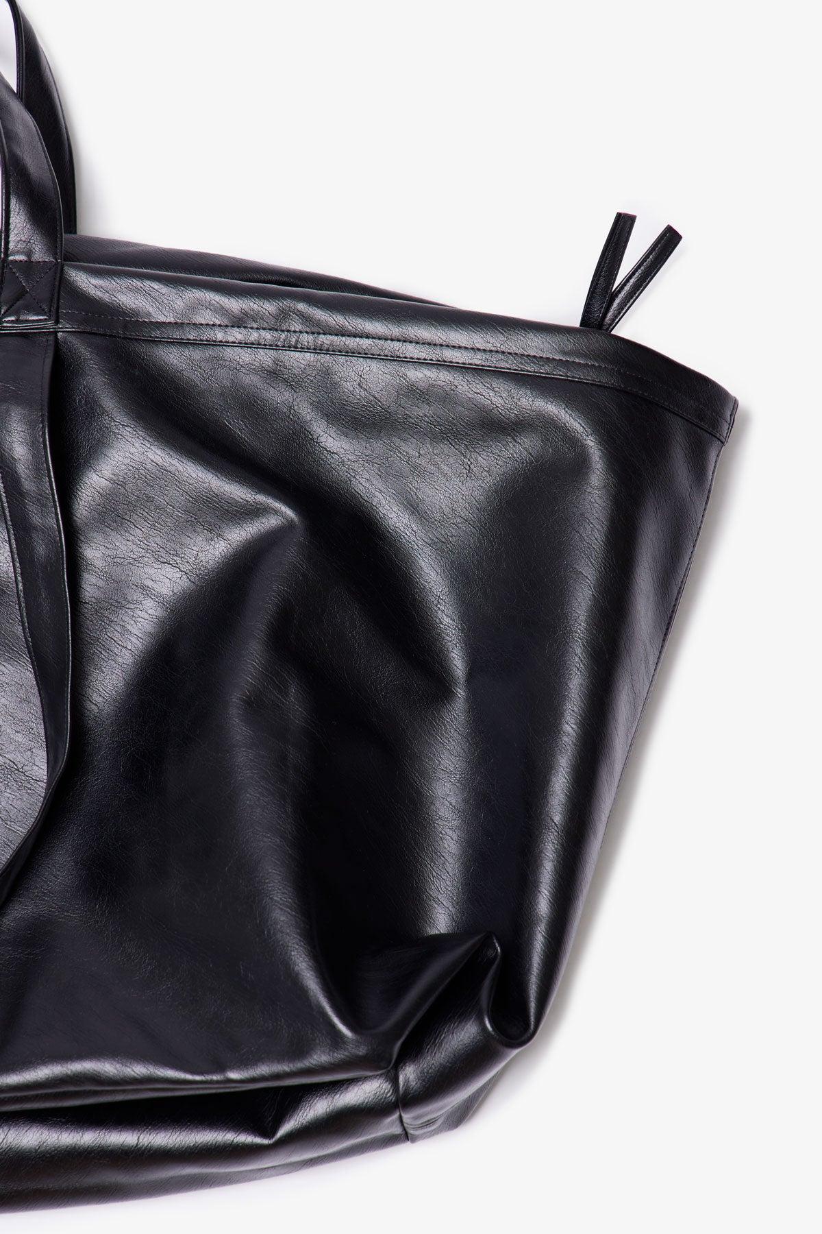 Constructed from a lightweight faux leather with a soft sheen, the Leather Weekender Bag - Black is an oversized carryall designed for short trips and everyday use. It features a spacious main compartment with a metal zip closure, sturdy top handles, and an additional shoulder strap for versatile carrying. Finished wit