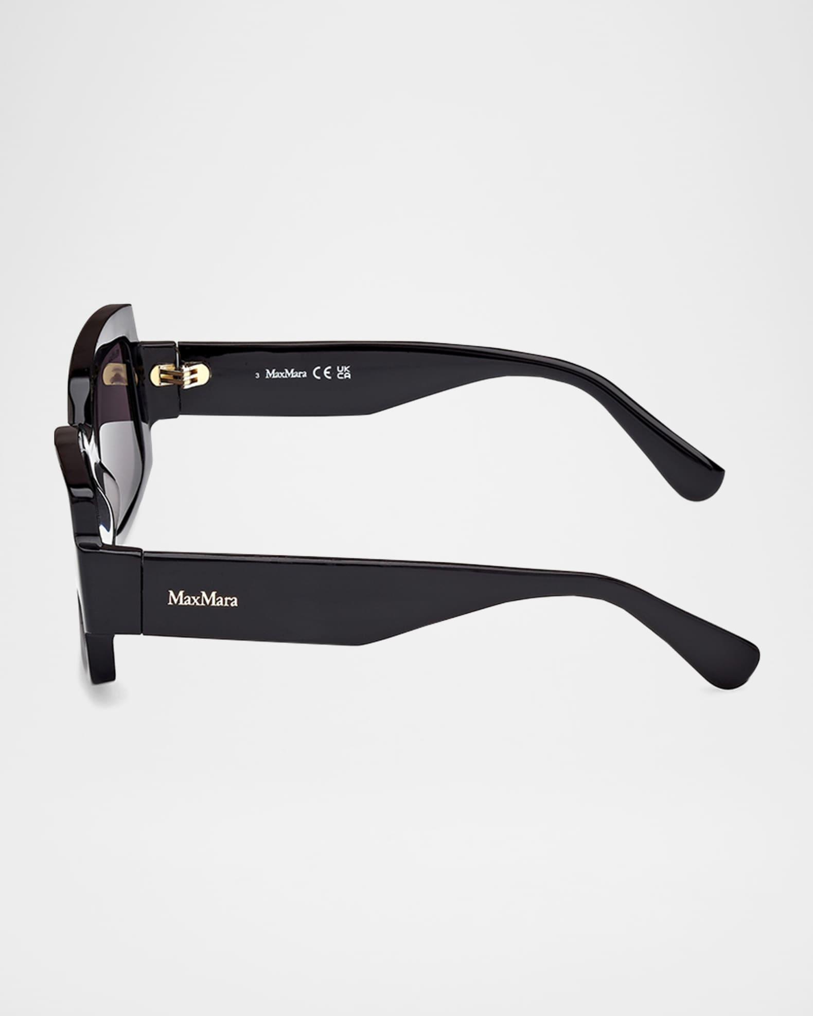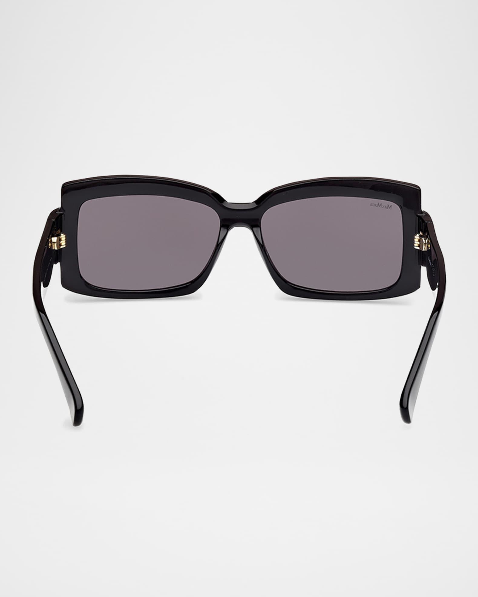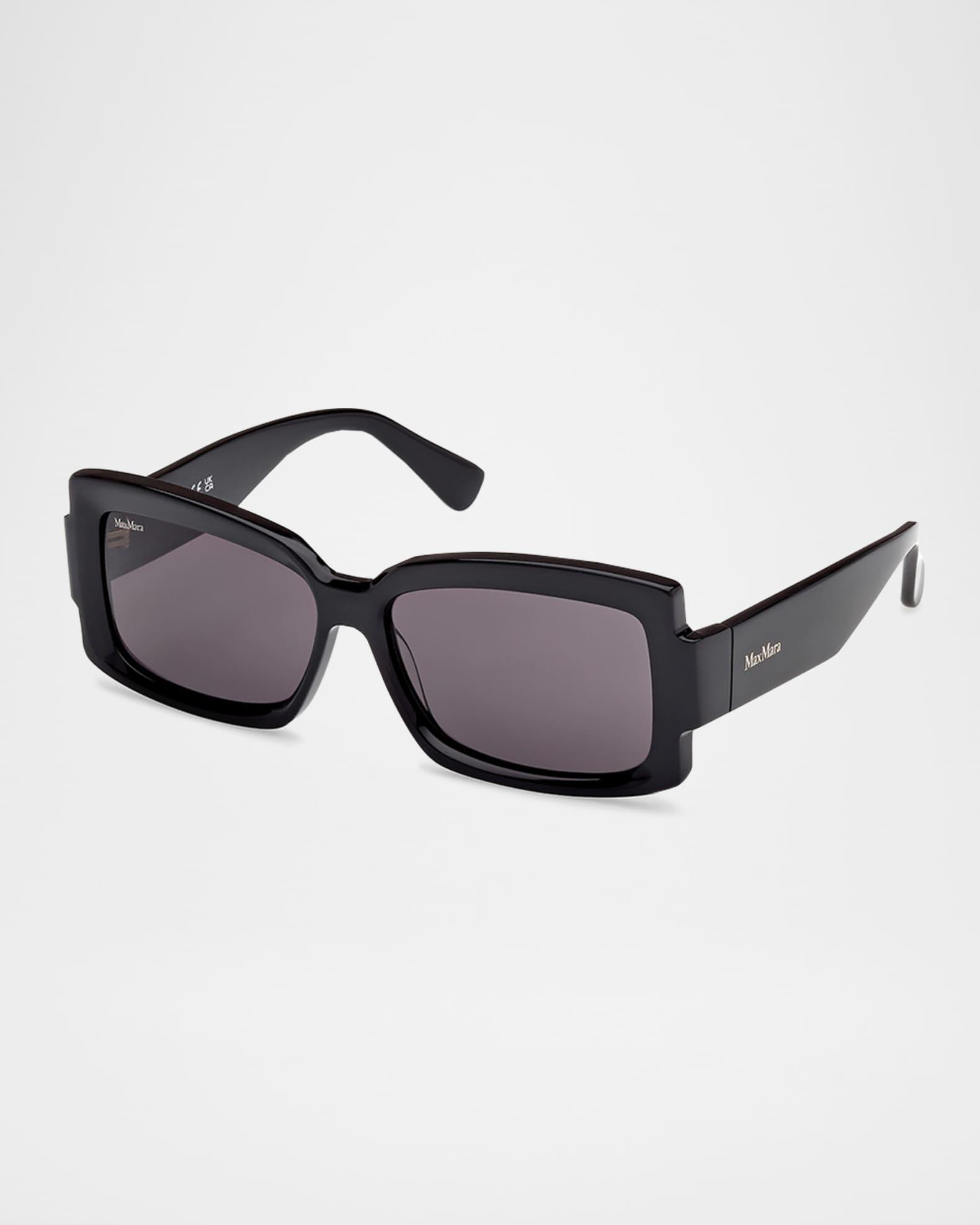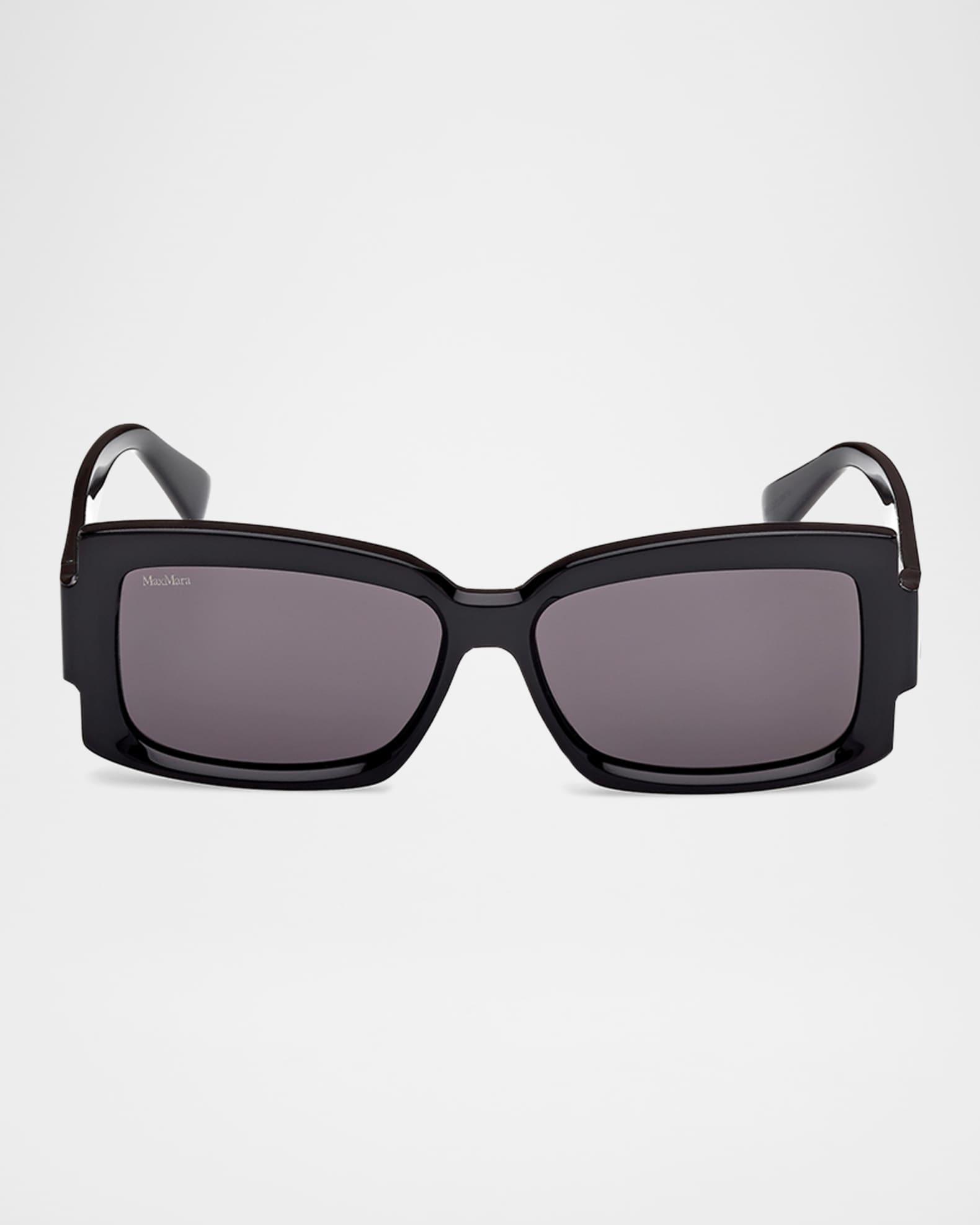 Max Mara "Lee-3" rectangular sunglasses in acetate Eye/bridge/temple (in mm): 57-14-135 Solid color lenses Saddle nose bridge Logo lettering on the lens Wide, tapered arms 100% UVA/UVB protection Imported Proposition 65 warning for California residents