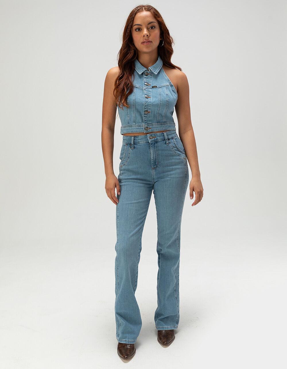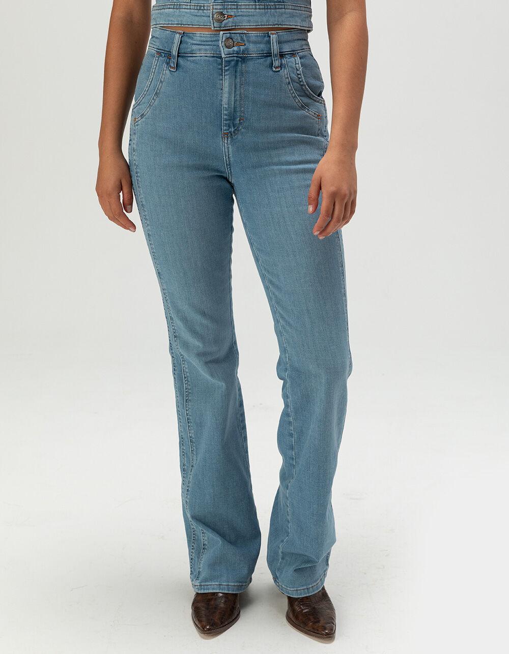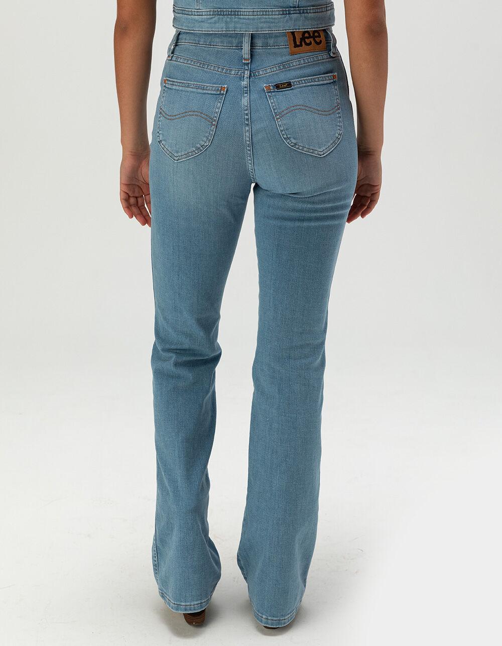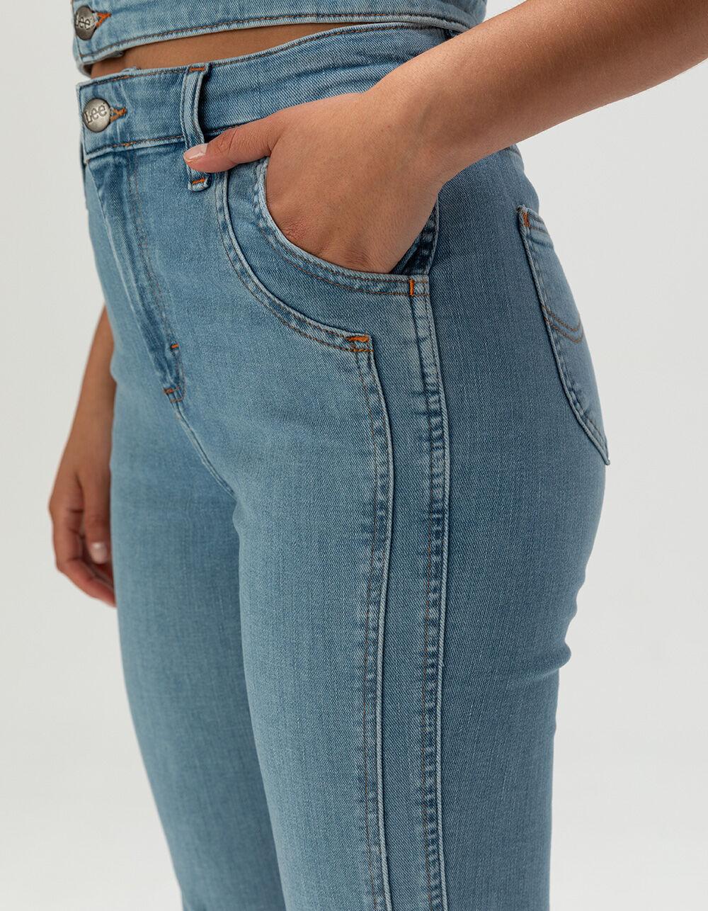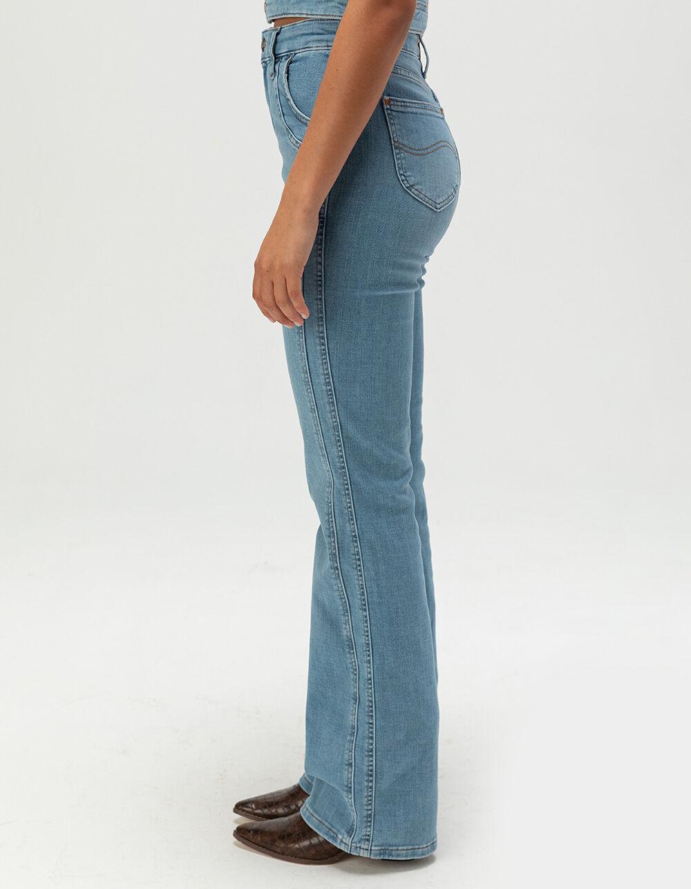 LIGHT WASH. Lee High Rise Double Side Seam Bootcut Jeans. Spice up your bootcut with the pair that’s all about silhouette. These unique jeans come with all of the signature detailing, from the 5-pocket design to the x-tacks at the back. Double-stitched with orange thread for a double seam effect and utilizing pieces of recycled cotton, these bold bootcuts were born to stand out. Fitted fit. High rise. Bootcut. 19" leg opening. Zip-fly with button closure. Two hip pockets. Two back spade pockets. 94% Cotton 4% Elastomultiester 2% Elastane. Machine wash. Imported.