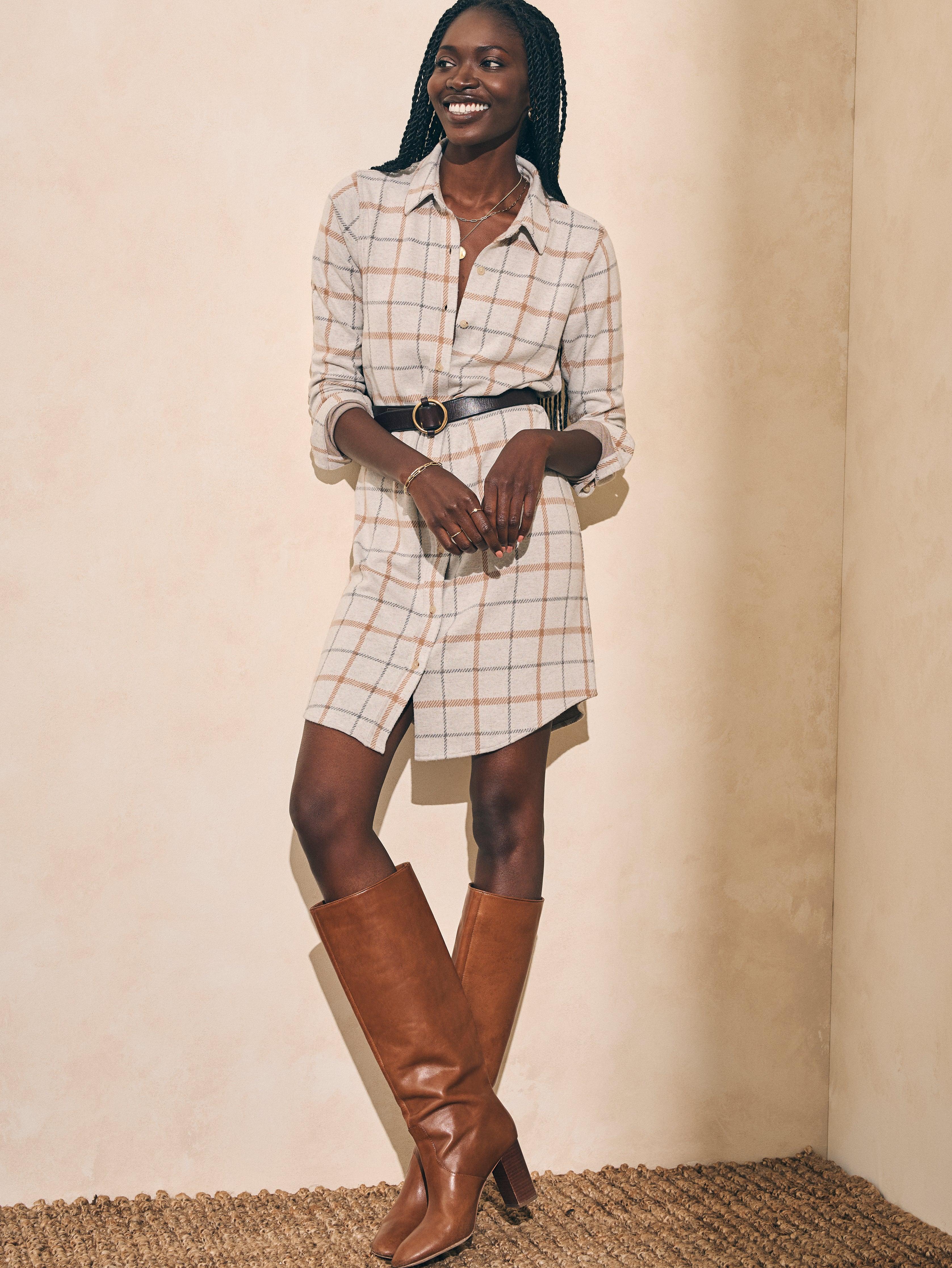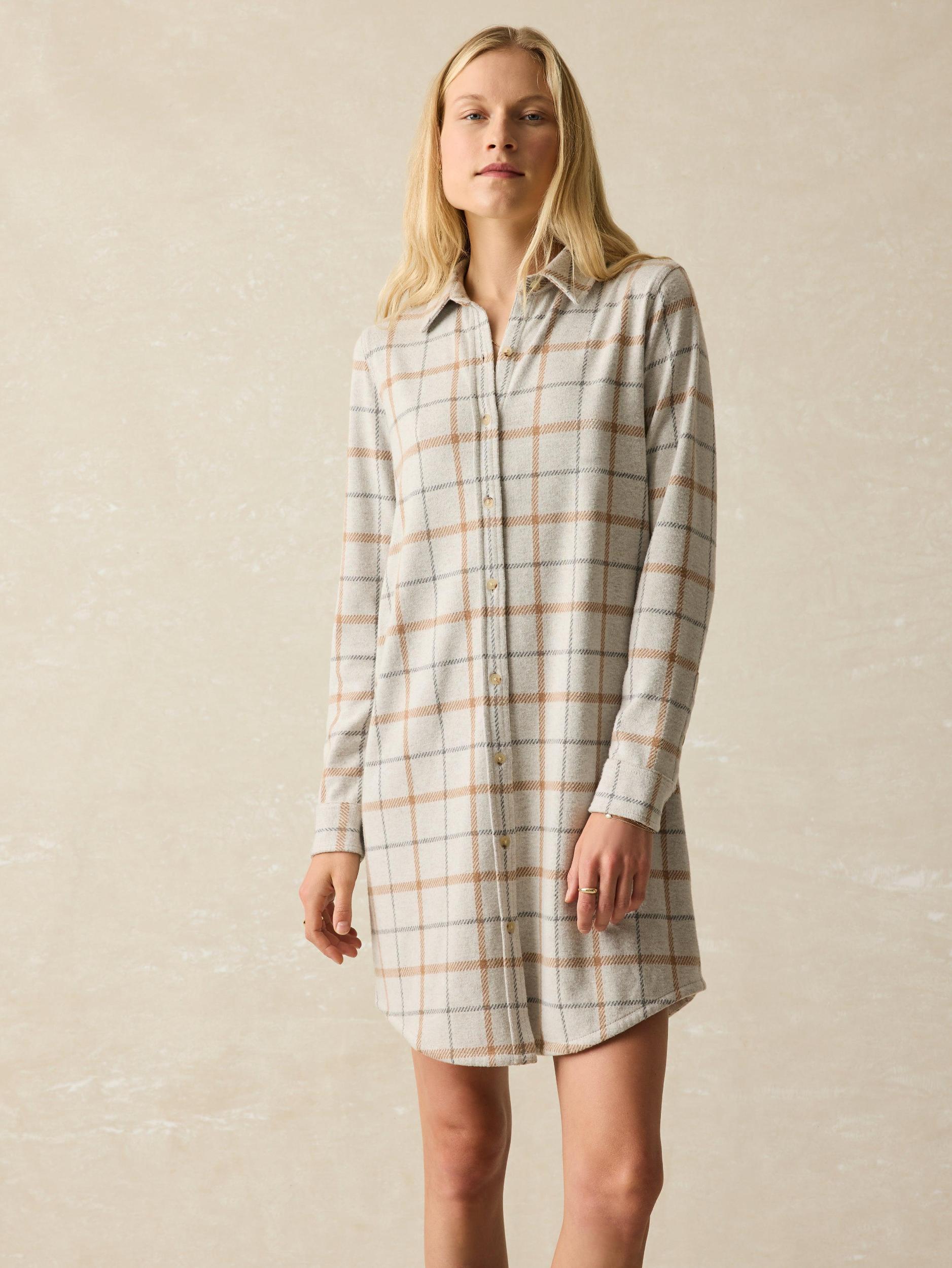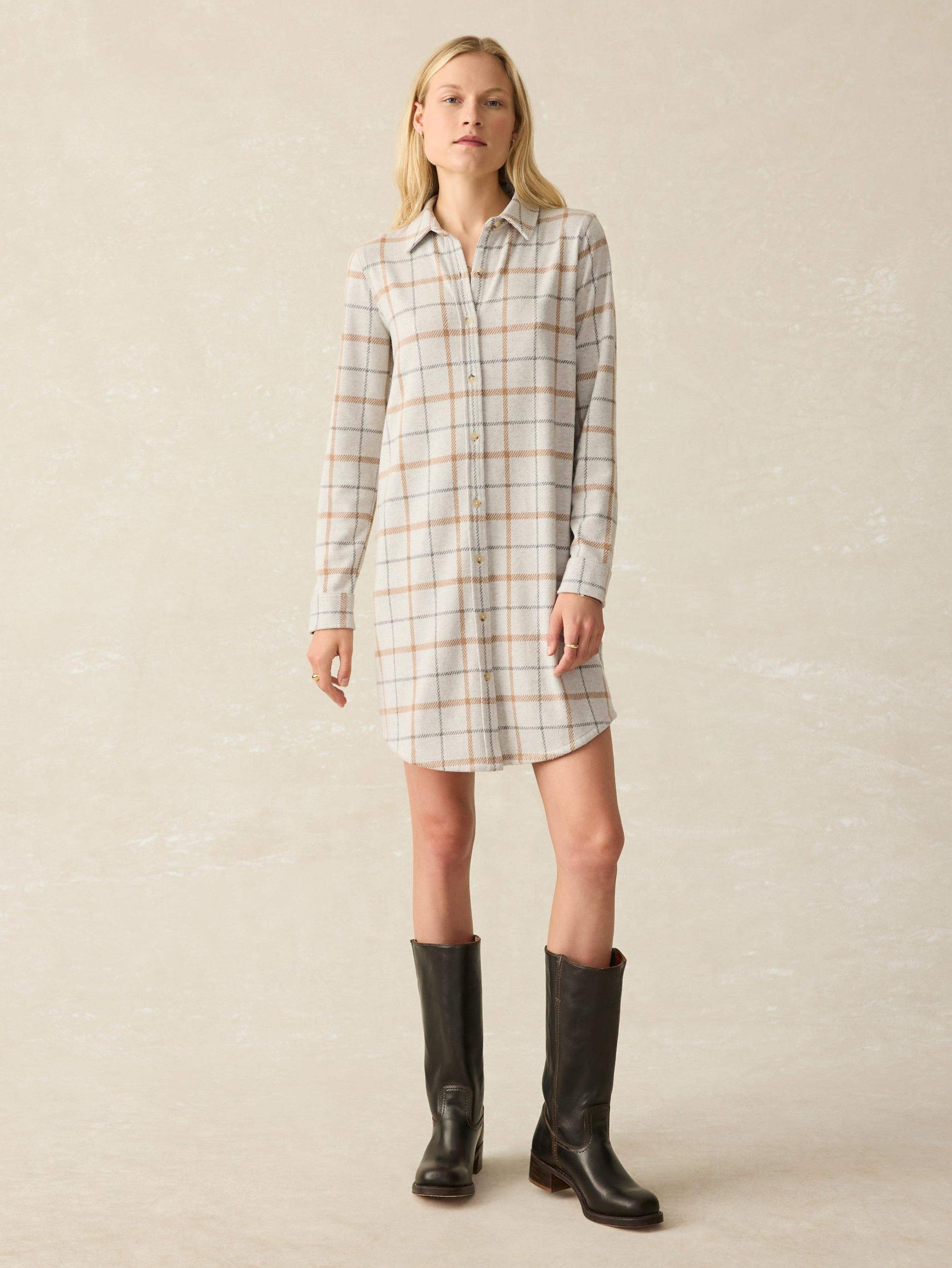 If you already love our #1 bestselling Legend™ Sweater Shirt, you'll want to add this option to your weekly rotation. This softer-than-soft shirt dress is the ideal option for days when you’re craving coziness but still want to look pulled together. Relaxed, with an elevated outdoorsy look, it's our take on fall's best no-fuss dress. Fit: Slim through the chest, sweeps out through the body Detail: Spread collar, button front. Long sleeves with button cuffs. Shirttail hem. Material: 65% Viscose, 30% REPREVE® Recycled Polyester, 5% Elastane Model: Fatou is 5’10 wearing size Small Care: Turn inside out. Machine Wash cold with like colors. Gentle cycle. Do not bleach. Tumble dry low. Remove promptly. Cool iron when needed. WDC0010-OTW