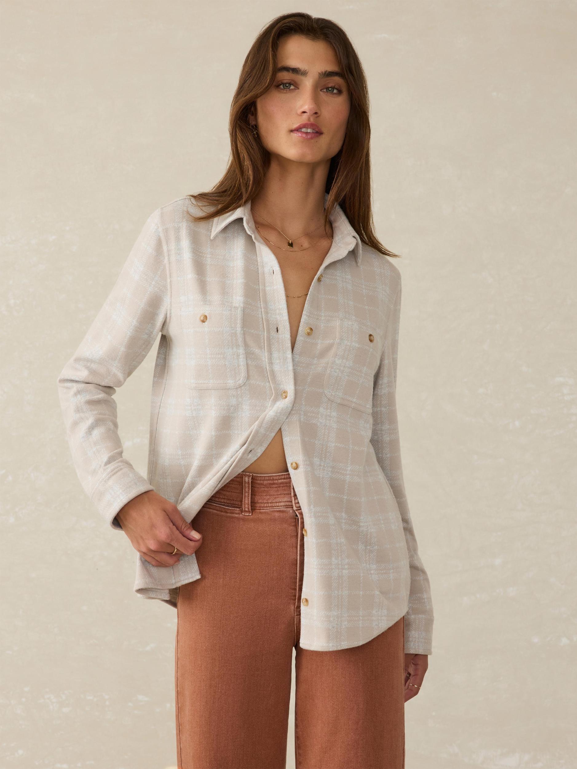 Often imitated, never duplicated. Our world famous Legend™ Sweater Shirt is crafted through a meticulous 64-step manufacturing process to create a custom fabric blend. The result is an incredibly soft knit shirt that you simply have to feel to believe. Fit: Classic Fit, Length: 26½" Detail: Spread collar, button front. Long sleeves with button cuffs. Chest patch pockets Material: 65% REPREVE® Recycled Polyester, 30% LENZING⁜ ECOVERO⁜ Viscose, 5% Elastane Model: Lexi is 5'7 wearing size Small Care: Turn inside out. Machine wash cold with like colors. Gentle cycle. Do not bleach. Tumble dry low. Remove promptly. Cool iron when needed. WKF2314-DPP