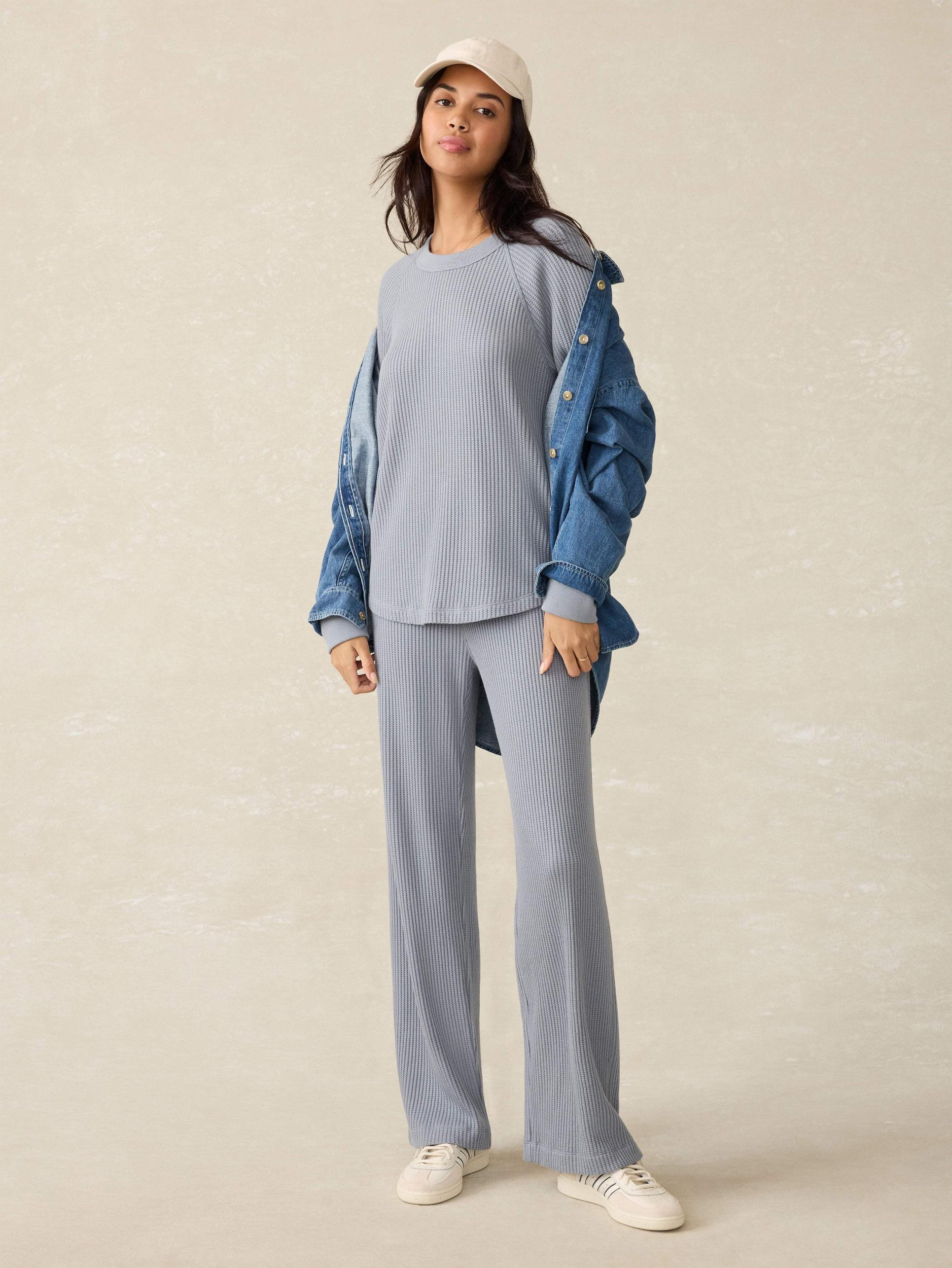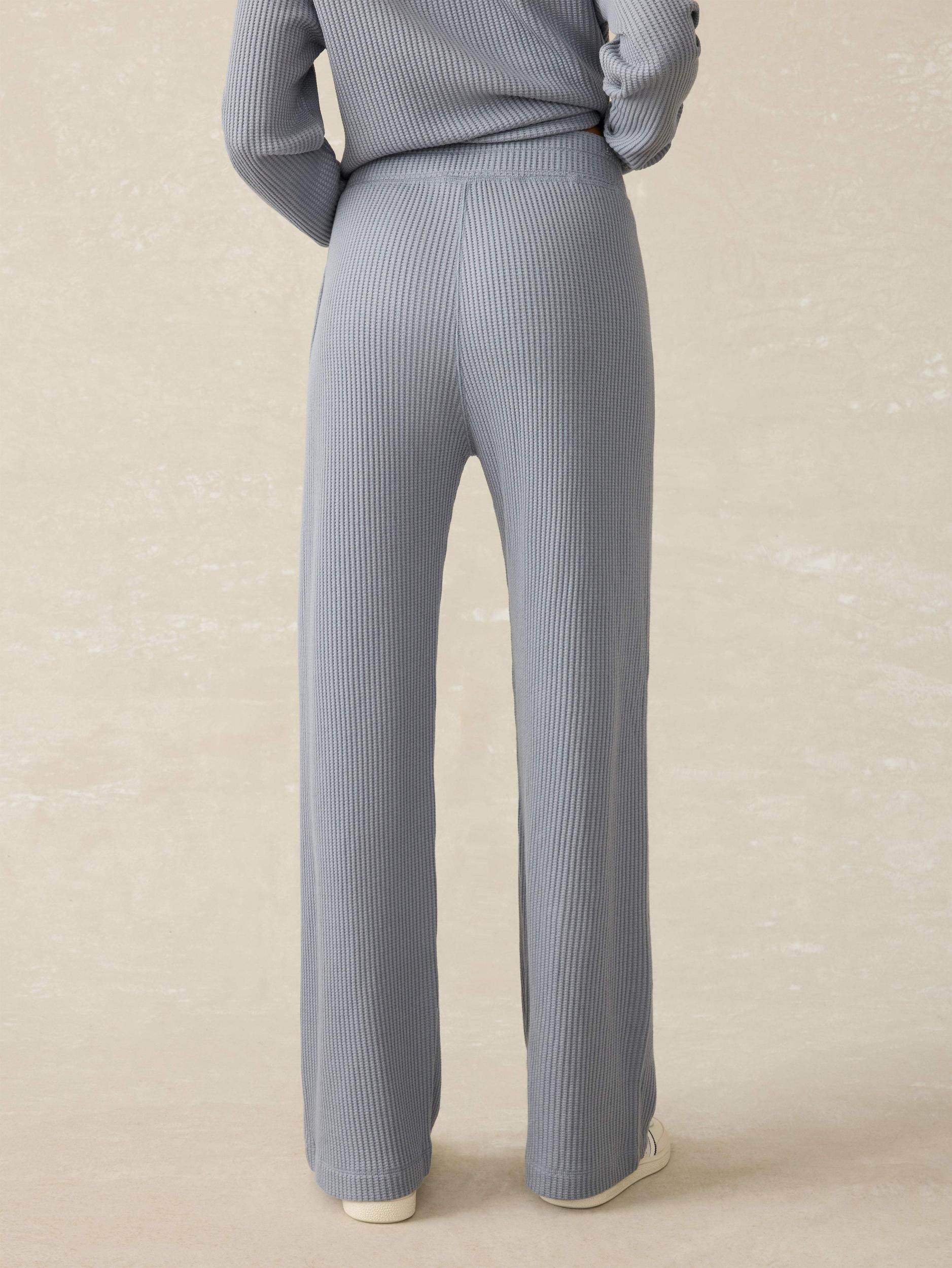 As the temps dip, it's all about staying toasty. Crafted from a lightweight pima cotton and modal blend, this effortless pant will be your standby. The subtle waffle pattern adds softness and breathability and we love it styled with its matching crew for a monochromatic look. Fit: Relaxed fit. Inseam: 30" Detail: Wide leg pant with elastic waistband. Faux button detail at waistband. Material: 49% Pima Cotton, 49% TENCEL™ Modal, 2% Elastane Model: Ana is 5'9 wearing size Small Care: Turn inside out. Machine wash cold separately. Delicate cycle. Do not bleach. Tumble dry low. Remove promptly. Cool iron when needed. WBH2416-RWI