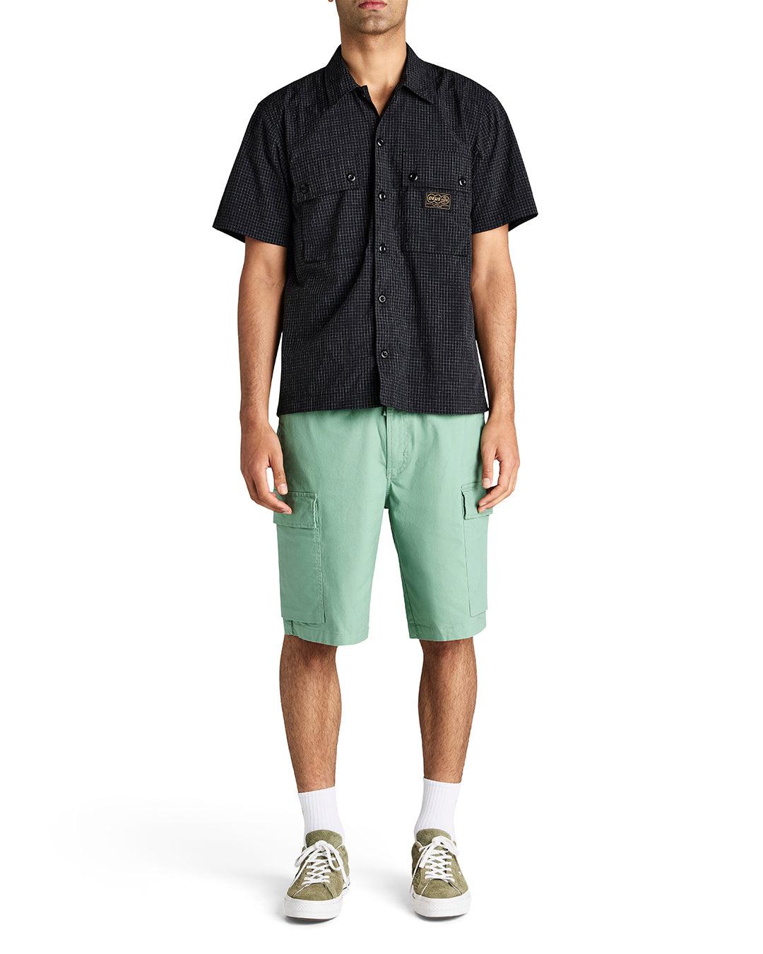 Relaxed Fit Short With Branded Back Label, Side Cargo, Back Pocket Flaps And Side Entry Welt Pockets, Elasticated Waistband With Internal Drawcord Adjustment, Branded Snap Closure At Waist, Zip Fly, In A Cotton And Cordura Nylon Mix Reverse Twill Fabrication With A Garment Wash