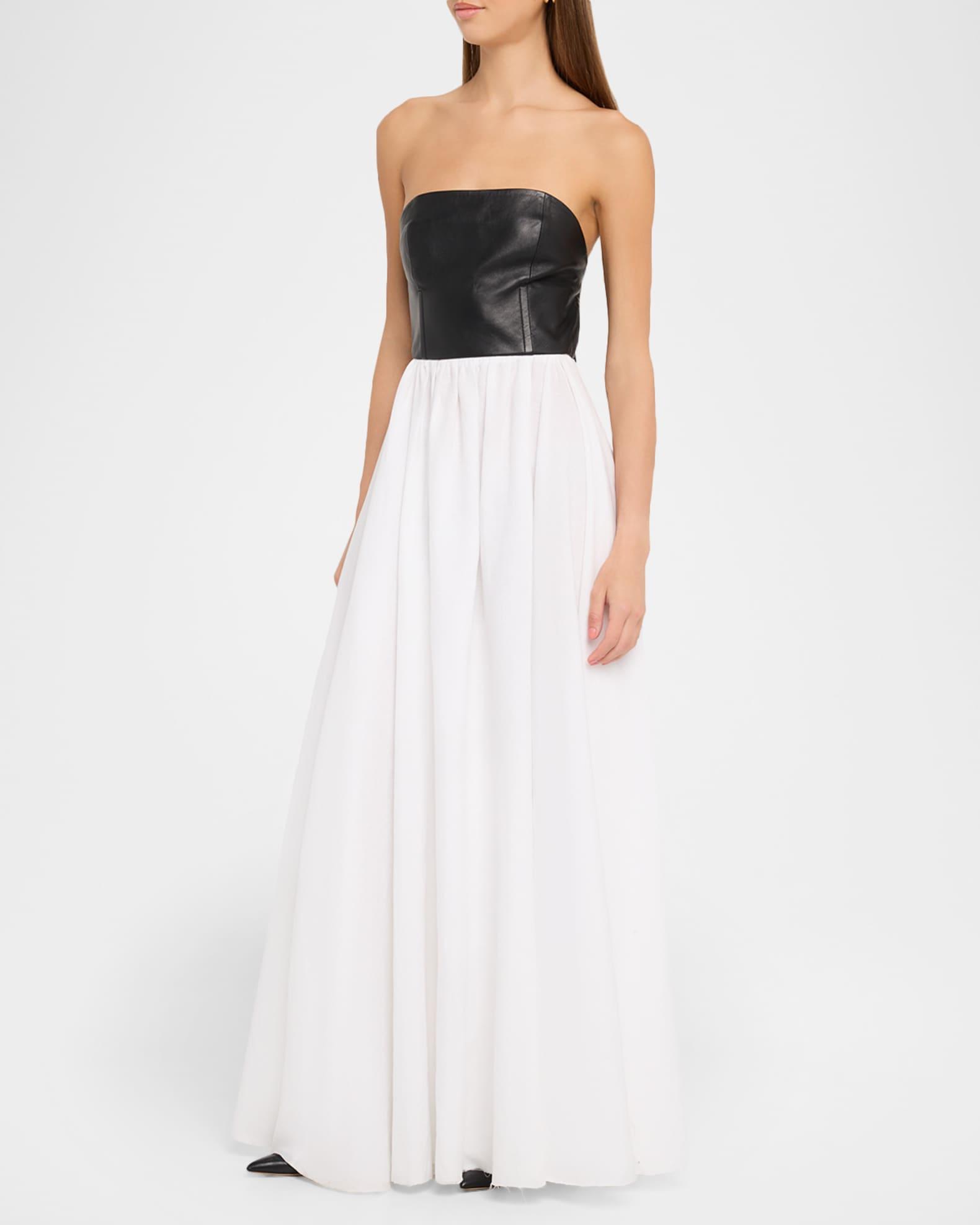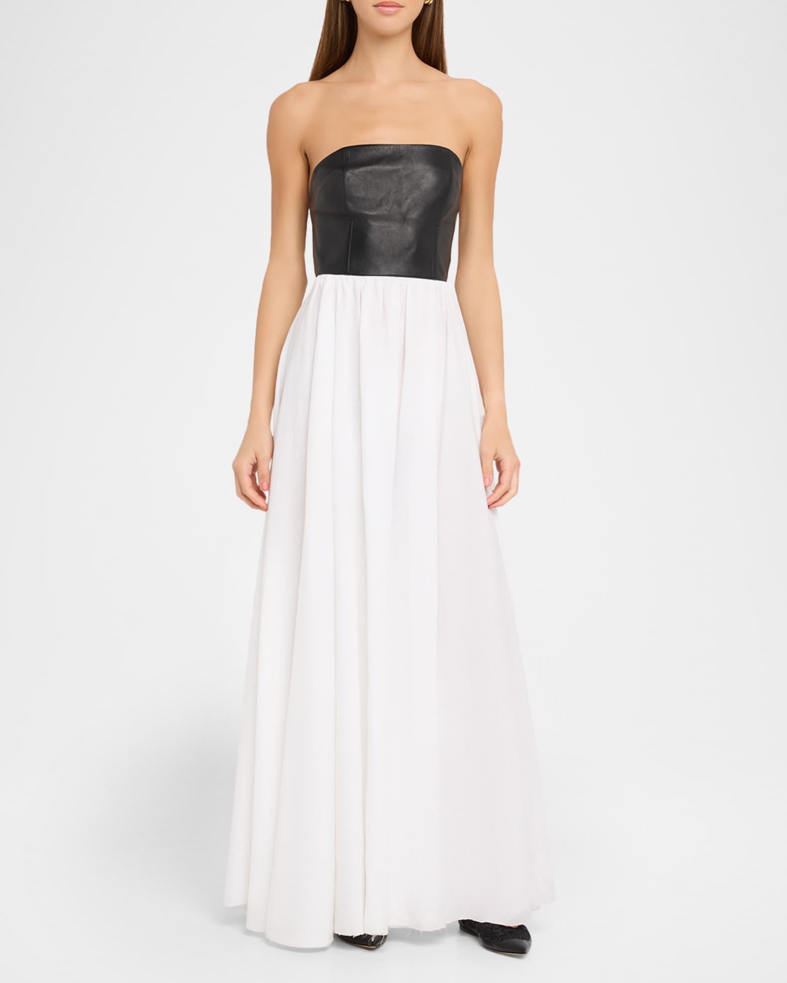 Lehti Mixed-Media Strapless Maxi Dress