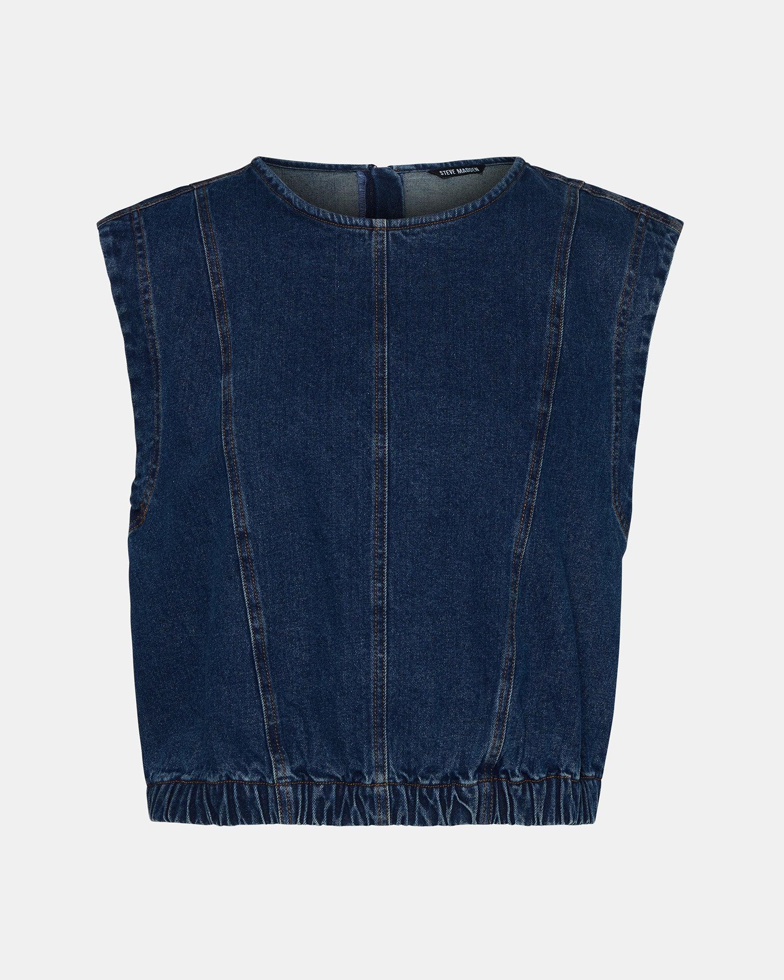 Expertly crafted the LEILA denim top featuring a distinctive zipper design on the back for contemporary appeal. The denim wash offers versatile styling options while the unique rear detail adds unexpected edge to this essential wardrobe piece. Sleeveless denim top Back zipper detail 99% cotton 1% spandex Hand wash Nayla is 5ft 10in and is wearing a size small Imported