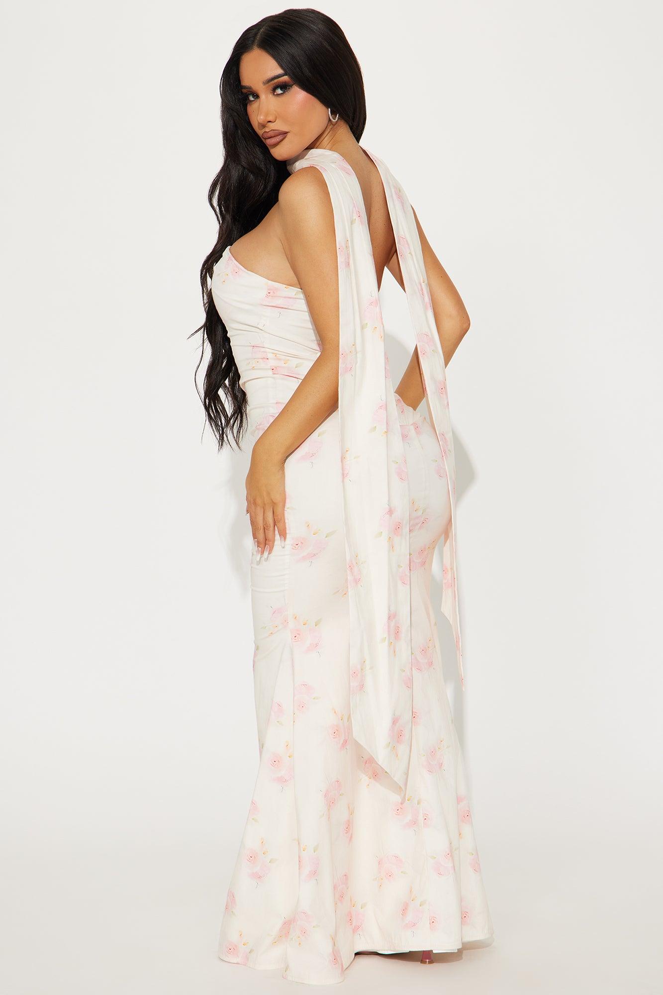Leila Scarf Poplin Maxi Dress - White/Pink