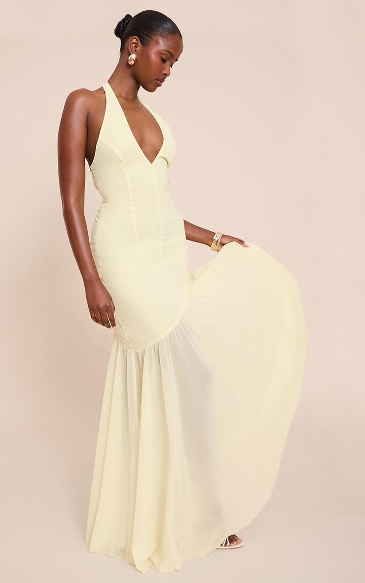 The lemon chiffon halterneck dropped waist maxi dress is a bright and breezy choice for daytime events. With a flowing chiffon finish and dropped waist, this dress flatters the figure while keeping the silhouette light and feminine. Pair with subtle heels, gold earrings and a woven clutch for an elegant daytime affair.Length approx 155cm/61inch (Based on sample size US 4)Model wears size UK 8/ EU 36/ AUS 8/ US 4Model Height - 5ft 9inchp]:!mb-4inch>Brand: PrettyLittleThingCategory: DressesProduct type: Shift DressColor: LemonMaterial: ChiffonDesign: PlainNeckline: PlungeSleeves: SleevelessOccasion: Occasion
