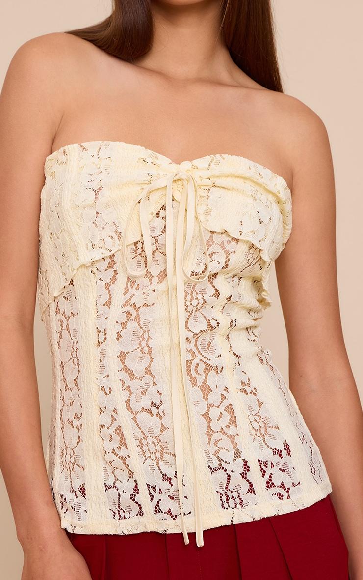 Infuse your outfit with romantic charm in the lemon fitted lace bandeau longline top. Designed to sculpt and flatter, it features delicate lace and a soft pastel hue. The longline silhouette offers extra coverage while remaining feminine and fresh. Pair with wide-leg pants or a flowing skirt for garden party glamour.Length approx 34.5cm/13.5inch (Based on sample size US 4)Model wears size UK 8/ EU 36/ AUS 8/ US 4Model Height - 5ft 9inchp]:!mb-4inch>Brand: PrettyLittleThingCategory: TopsProduct type: Cami TopColor: LemonMaterial: Tailored WovenDesign: PlainOccasion: Day