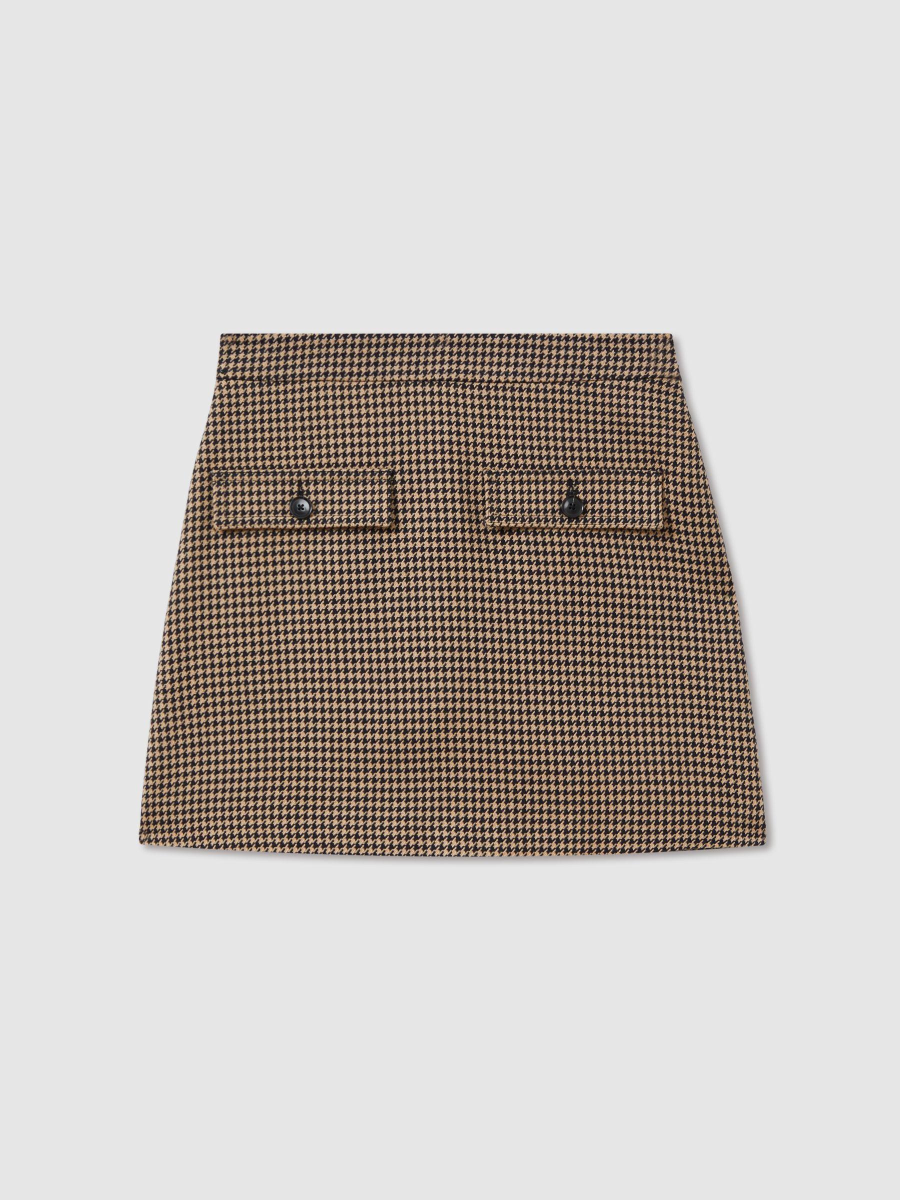 Fusing a beloved heritage dogtooth check with a new A-line silhouette, the Lena mini skirt is set to become a favourite. It sits high on the waist and features faux flap pockets to the front. Matching jacket Made with wool Dogtooth check design Faux flap pockets to front Zip-closure to side Mini length