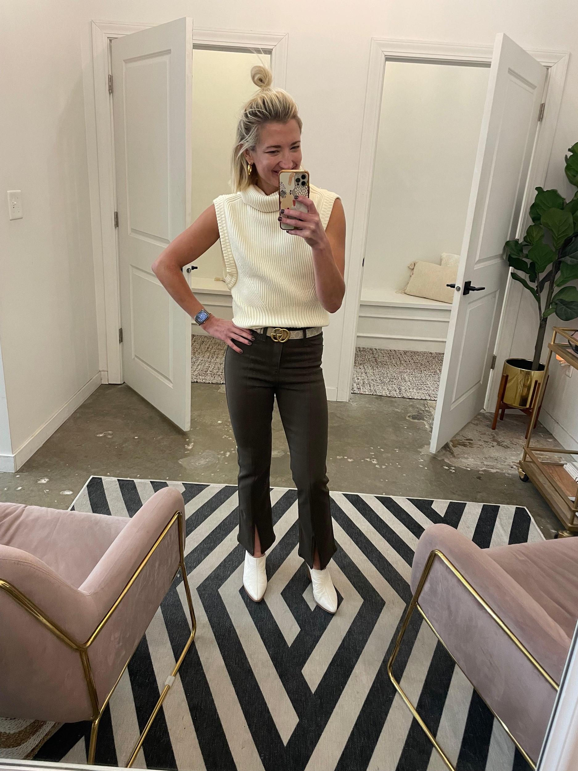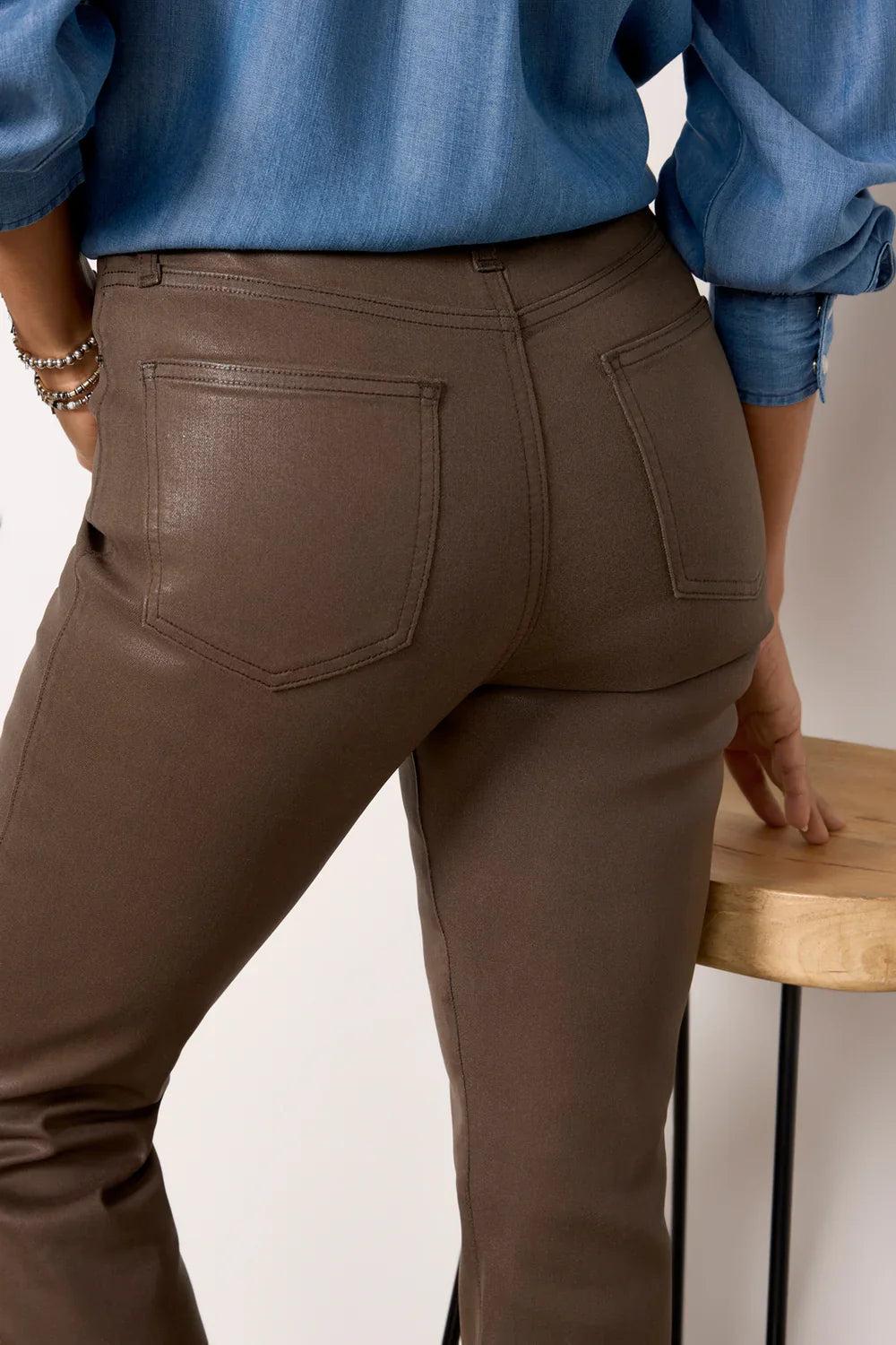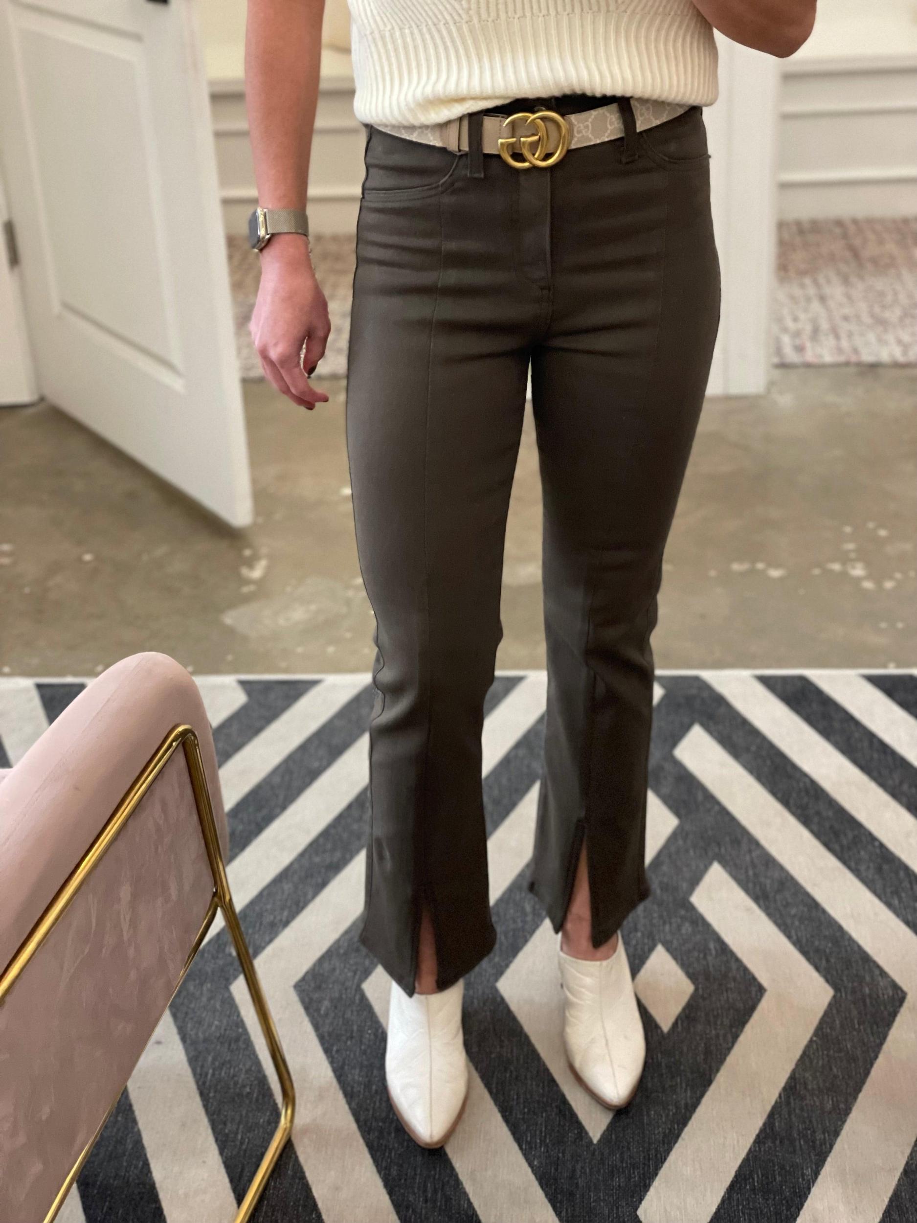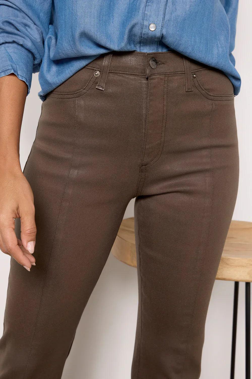 Finished in comfort-stretch coated denim, these stylish bootcut pants by Pistola feature a high-rise waist, slit front hems, and vertical seam details. Just enough stretch and structure! Pair with your favorite sweater or leather jacket! Runs true to size. Sarah shown in a 24 and is 5’3