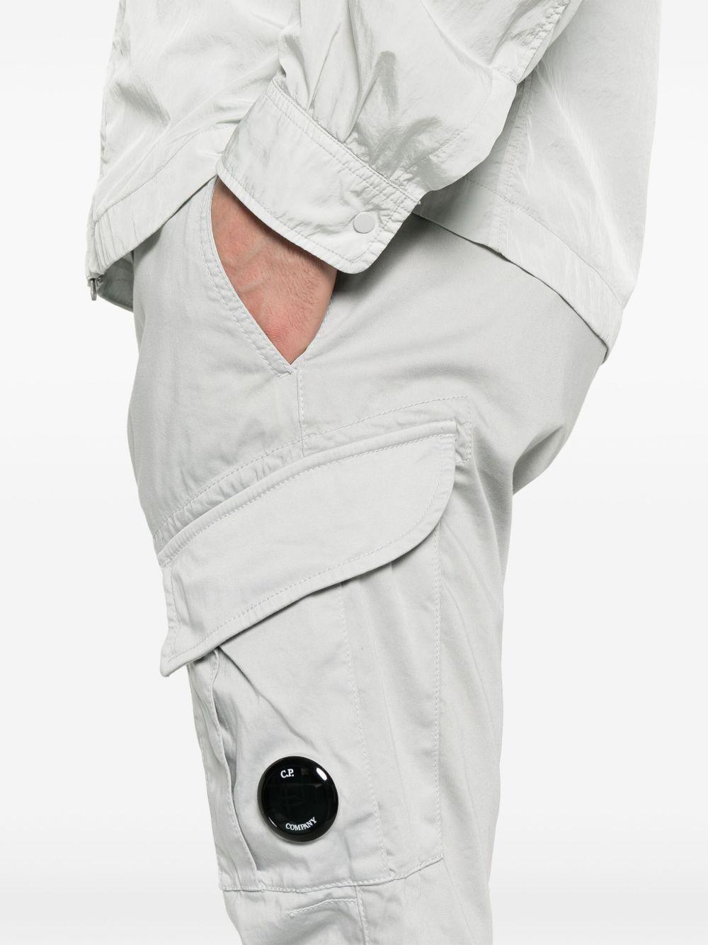 C.P. Company Lens-detail cargo pants | Grey | light grey | front button and zip fastening | belt loops | two diagonal pockets to the sides | C.P. Company suggests removing any detachable accessories before washing. | Elastane/Cotton | Tapered Pants | Pants | Clothing | Men
