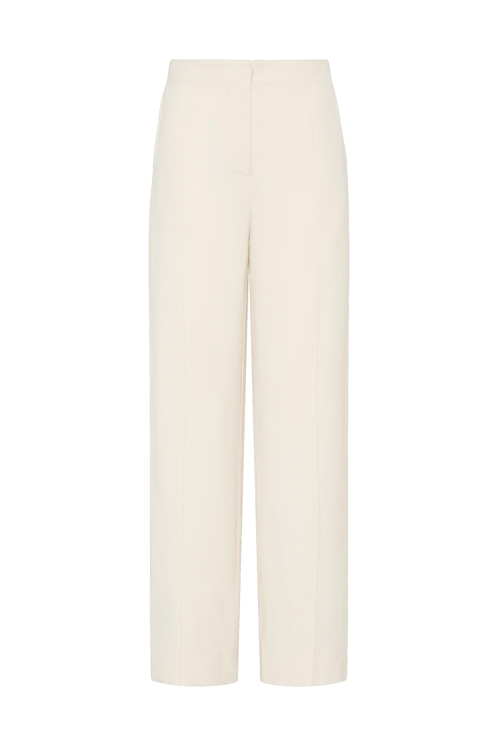 A classic mid-rise straight leg trouser, designed from an ultra soft blend of viscose and a signature 100% European Flax® linen fabrication in a creamy beige colourway. Refined in style, yet relaxed in wear it is softly tailored with a pleat detail through the front and back leg. Wear with the Enna Short Sleeve Blazer for a timeless approach to suiting. This style is true to size. Please note there is no elastic woven into the fabric so it does not offer any additional stretch.