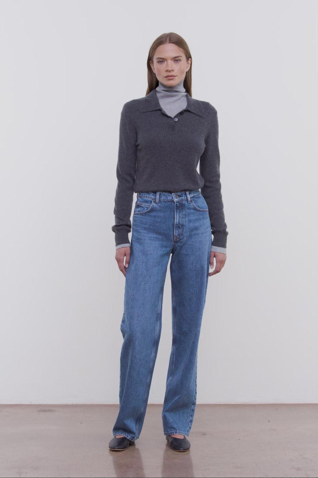 The Leo Jean is a straight-meets-barrel silhouette with a flattering high-rise waist. Its outseam curves at the knee, then tapers to a slim ankle. Cut from Italian rigid denim with a cinching V-shaped yoke at the back, it’s complete with antique-finish hardware and logo-embroidered zip fly.