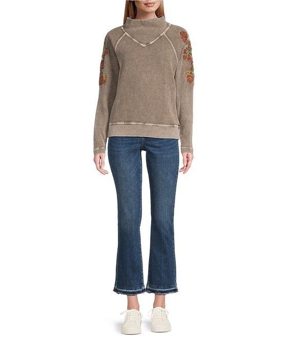From Leo & Nicole Petite, this top features: Waffle acid wash fabric Mock neckline Long sleeves Relaxed fit Embroidery motif at shoulders Straight hemline Pullover construction Cotton Machine wash cold/tumble dry Imported.