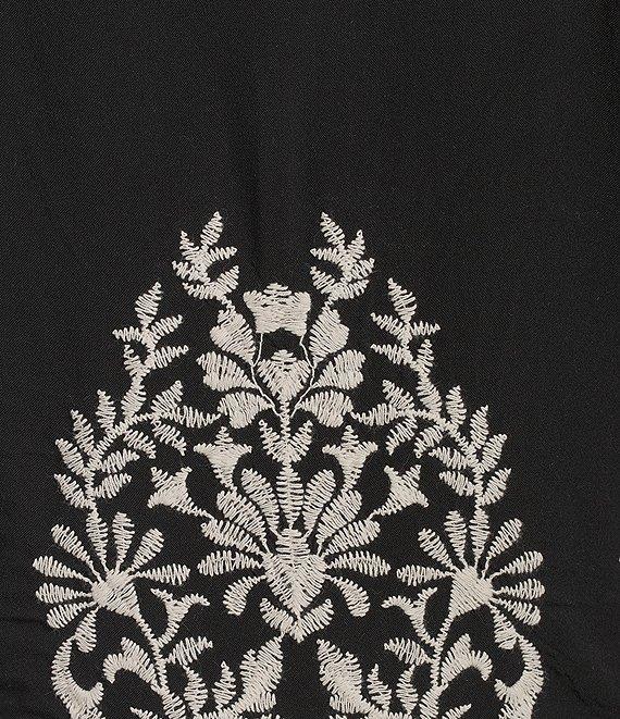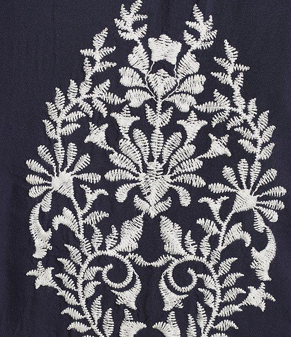 From Leo & Nicole, this top features: Woven fabrication Scoop neckline 3/4 sleeves Relaxed fit Allover embroidery and lace trim Lace trim on sleeves and hemline Scalloped lace hemline Pullover construction Rayon Machine wash/tumble dry Imported.