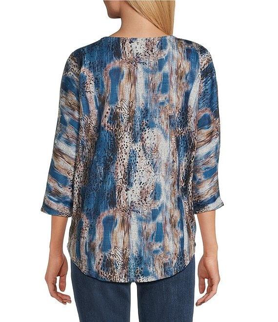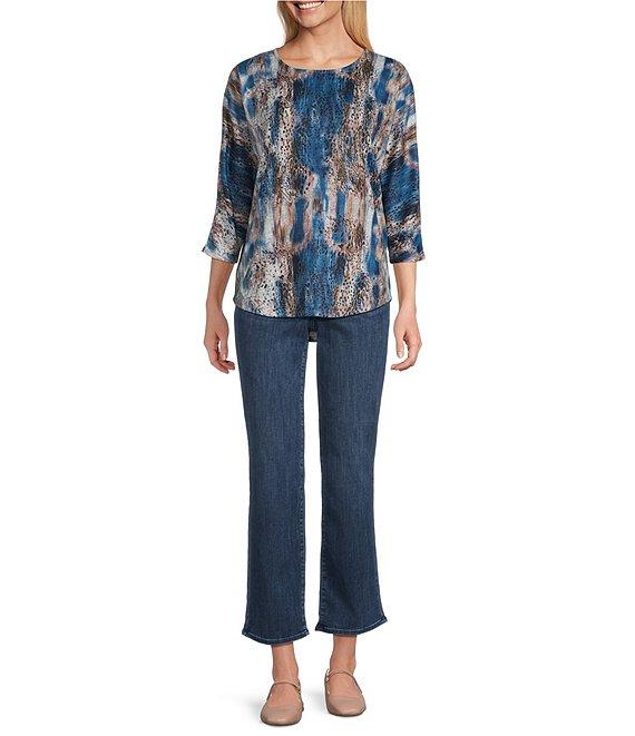 Leo & Nicole Hacci Knit Marble Effect Print Crew Neck 3/4 Dolman Sleeve Top