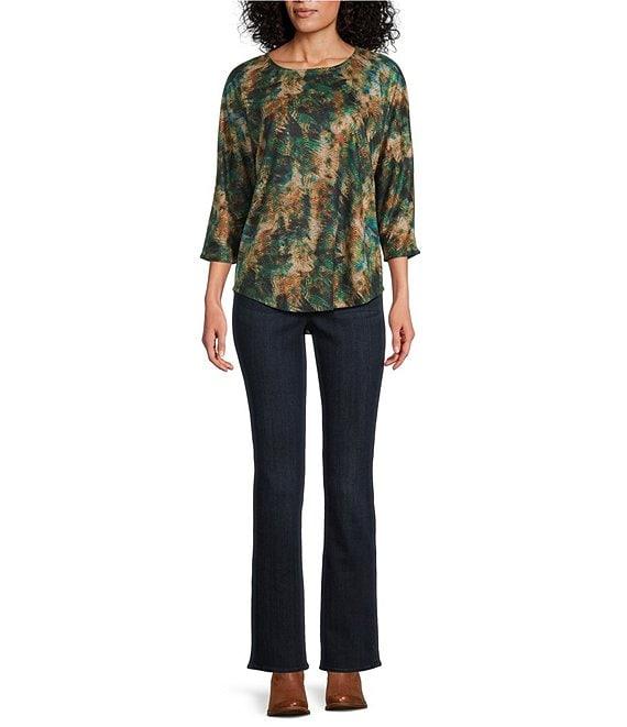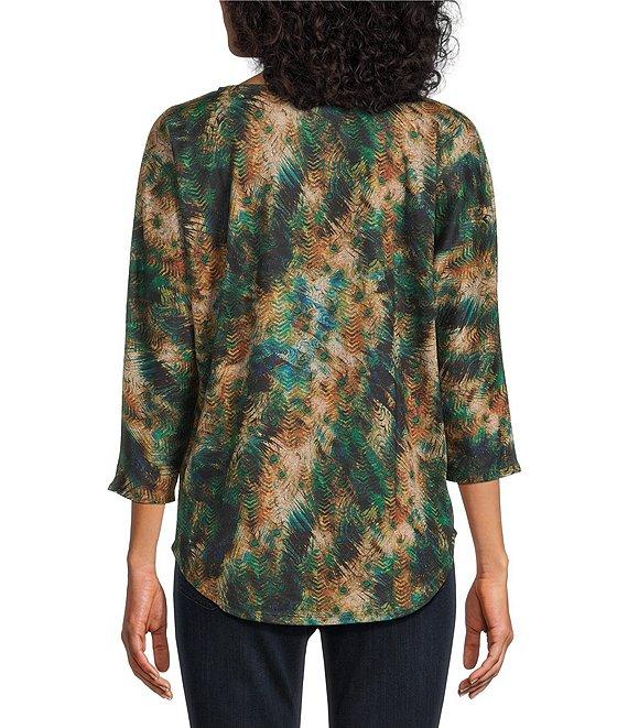 Leo & Nicole Petite Size Hacci Knit Peacock Express Print Crew Neck 3/4 Dolman Sleeve Top