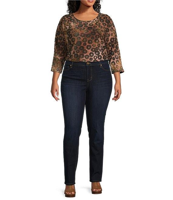 Leo & Nicole Plus Size Jacquard Print Crew Neck 3/4 Dolman Sleeve Top