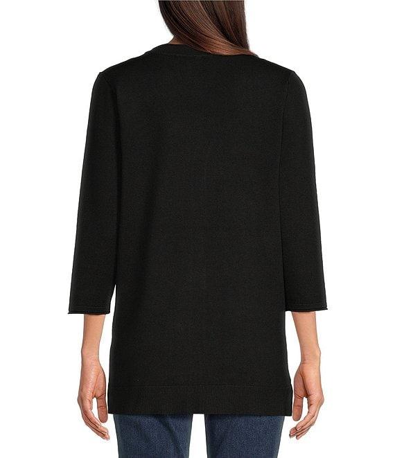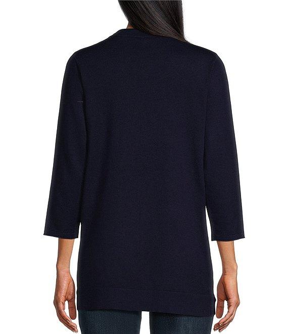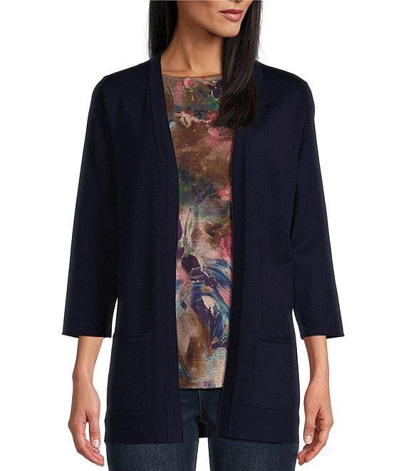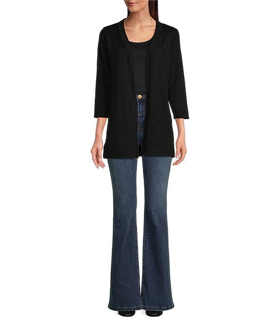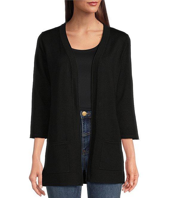 Leo & Nicole Pointelle Trim 3/4 Sleeve Open Front Cardigan