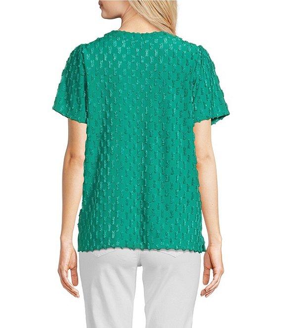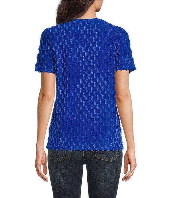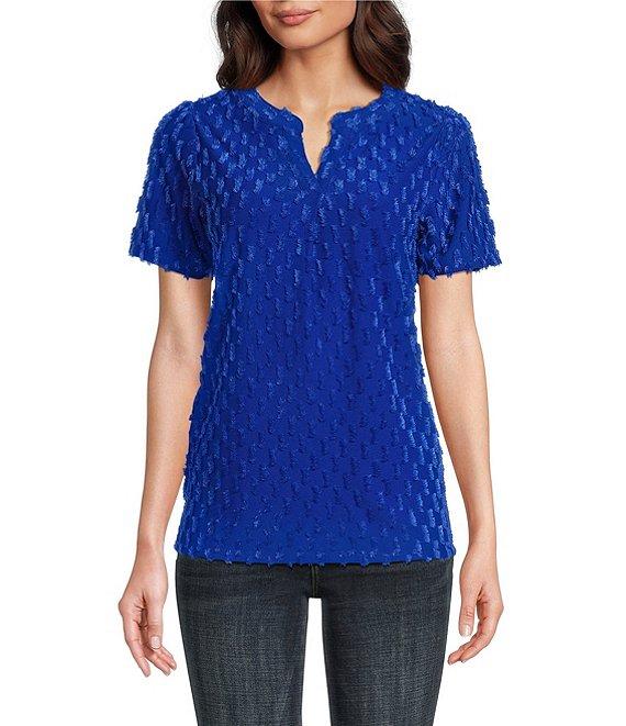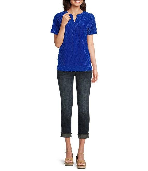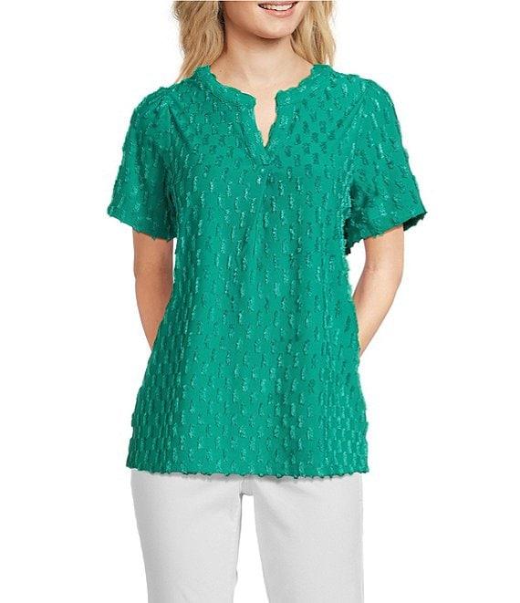 Leo & Nicole Split V-Neck Short Sleeve Clip Dot Top
