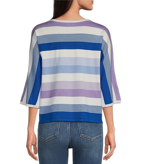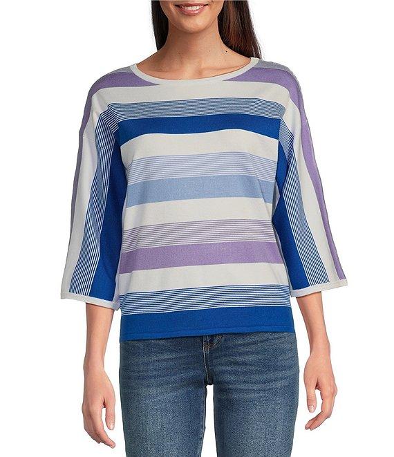From Leo & Nicole, this sweater features: Crew neckline 3/4 dolman sleeves Relaxed fit Horizontal multi stripe Straight hemline Pullover construction Viscose/polyester Machine wash/dry flat Imported.