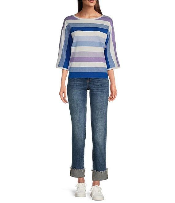 Leo & Nicole Stripe Crew Neck 3/4 Dolman Sleeve Sweater