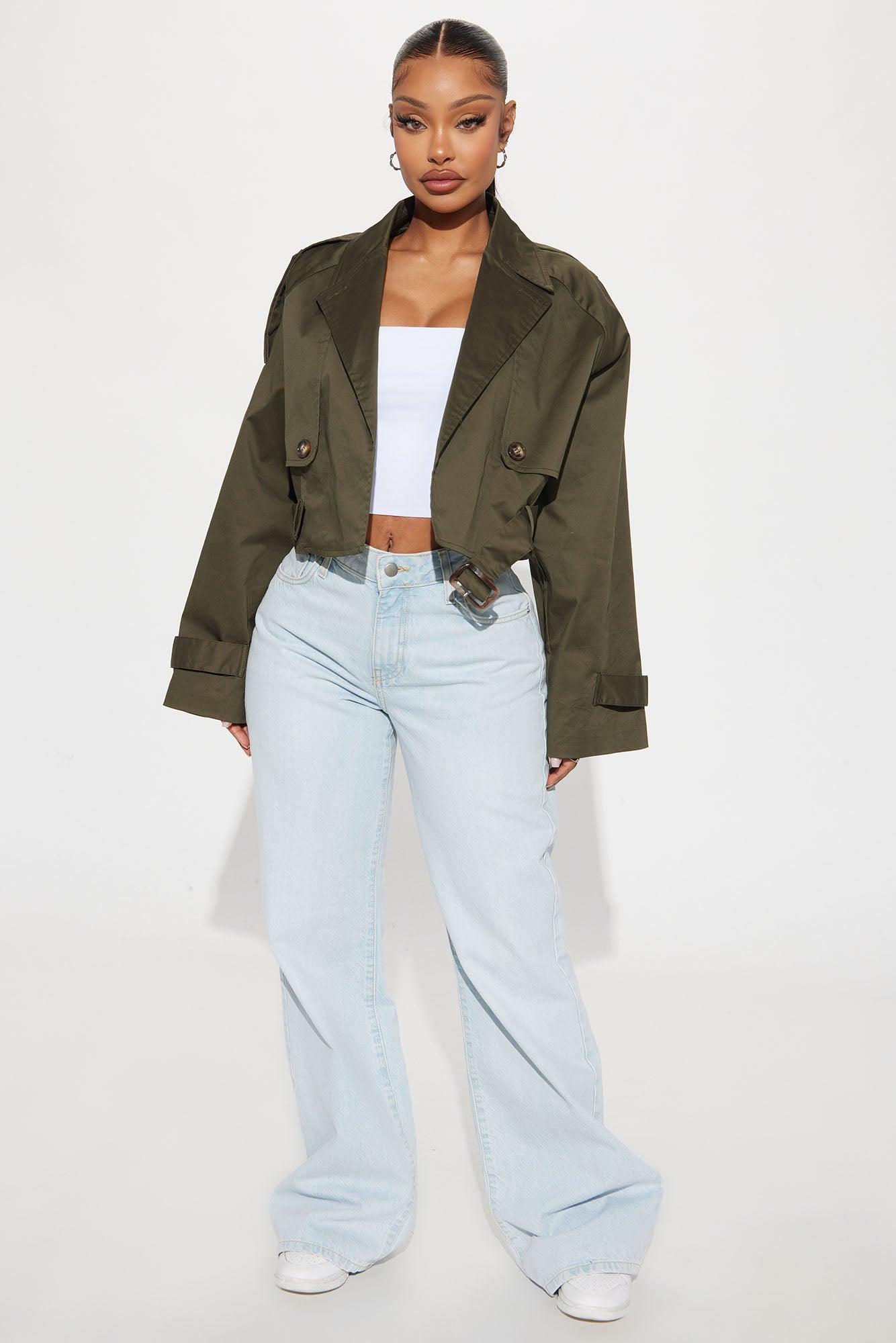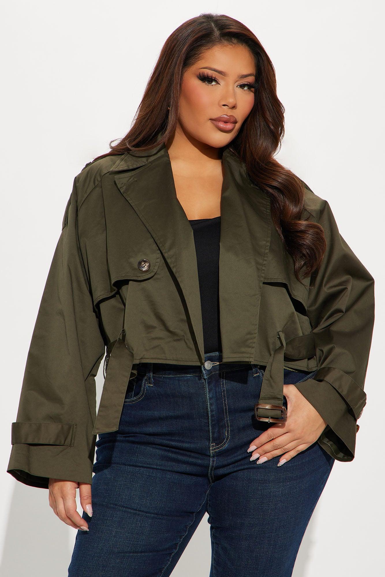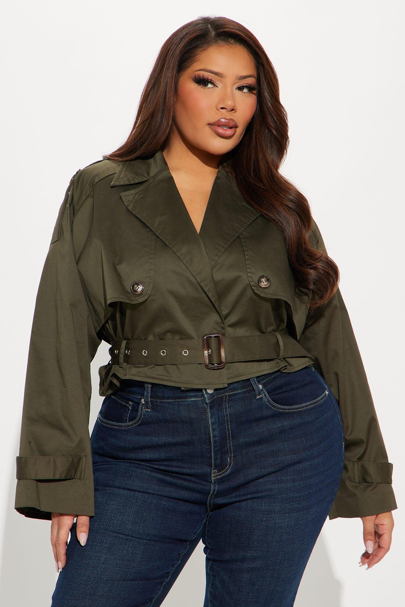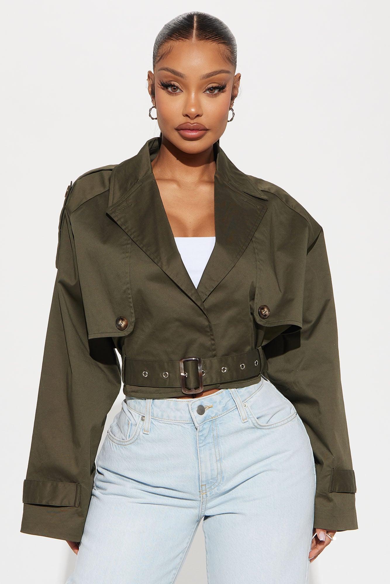 Available In Olive, Yellow, And Wine. Trench Lapel Collar Long Sleeve Twill Rigid Belted Cropped Fully Lined Self: 97% Cotton, 3% Spandex Lining :100% Polyester Imported California Proposition 65WARNING: Cancer and Reproductive Harm - www.P65Warnings.ca.gov.