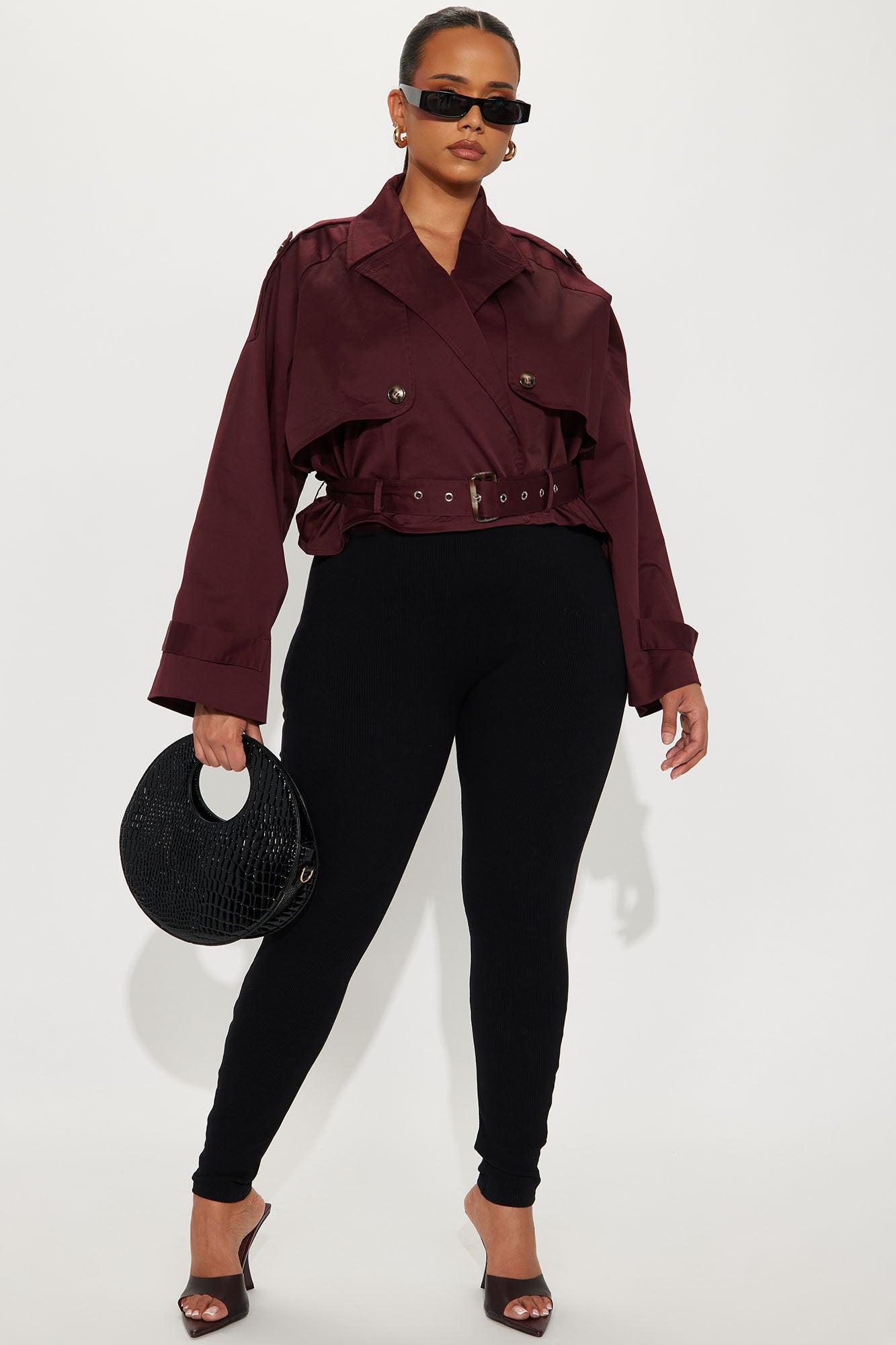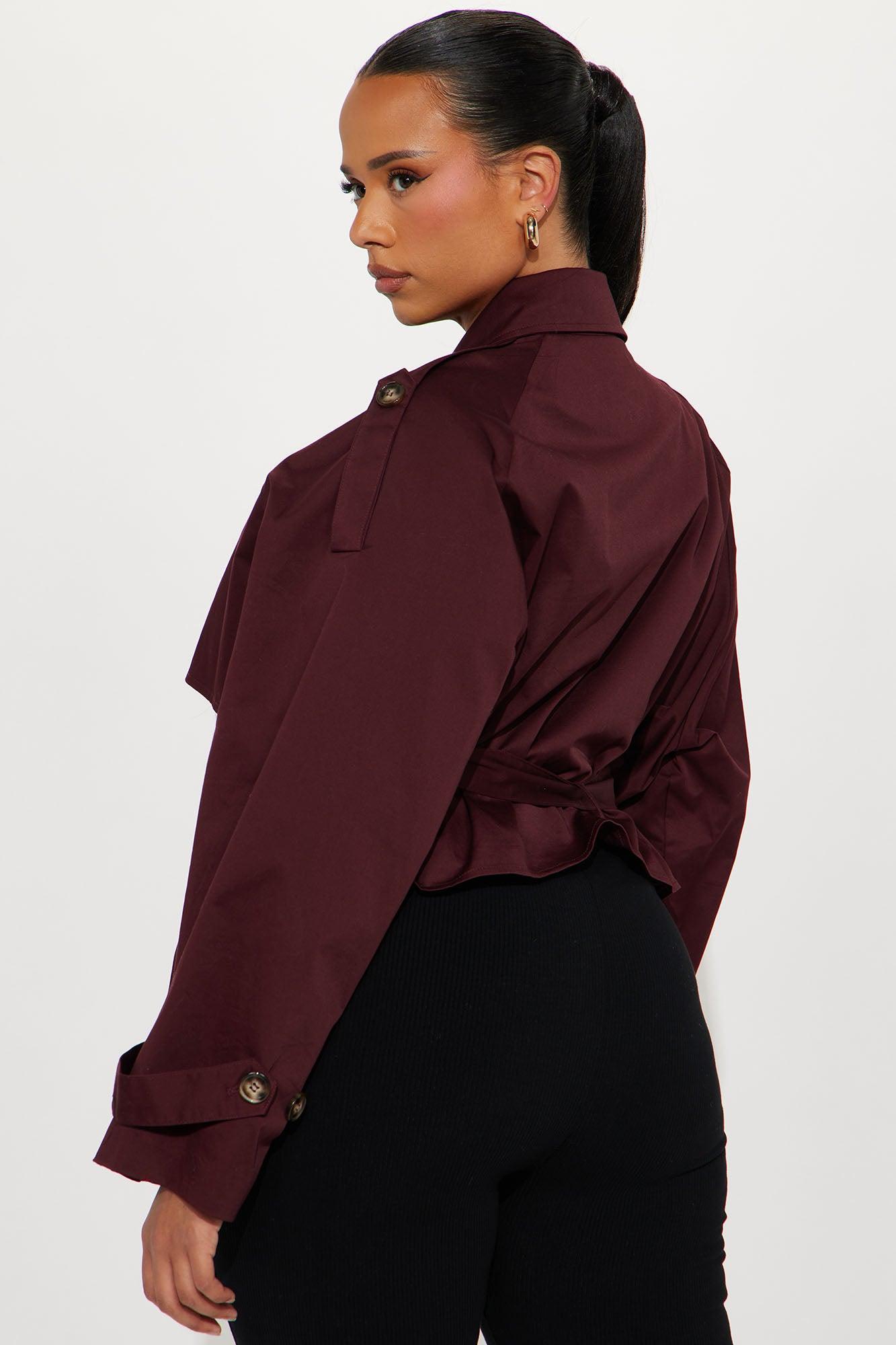 Available In Olive, Wine And Yellow. Trench Lapel Collar Long Sleeve Twill Rigid Belted Cropped Fully Lined Self: 97% Cotton, 3% Spandex Lining : 100% Polyester Imported California Proposition 65WARNING: Cancer and Reproductive Harm - www.P65Warnings.ca.gov.