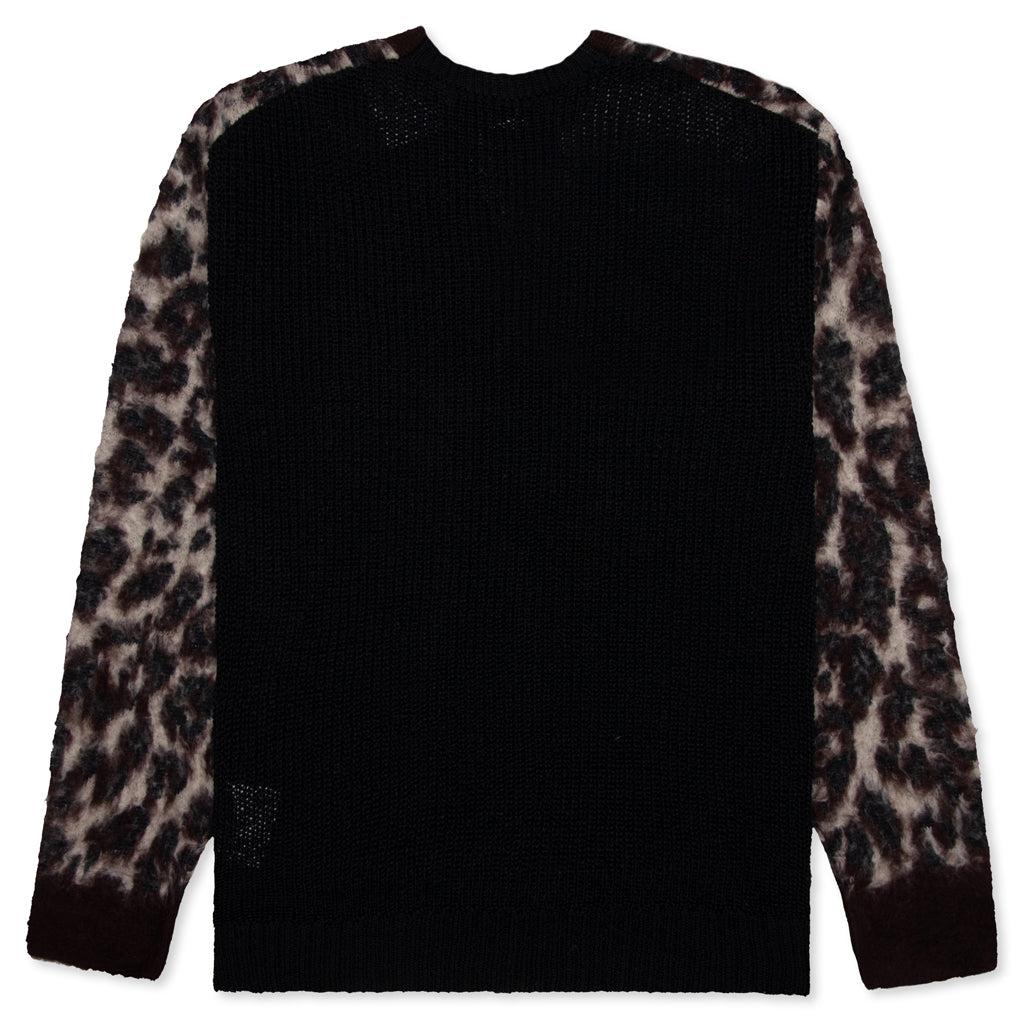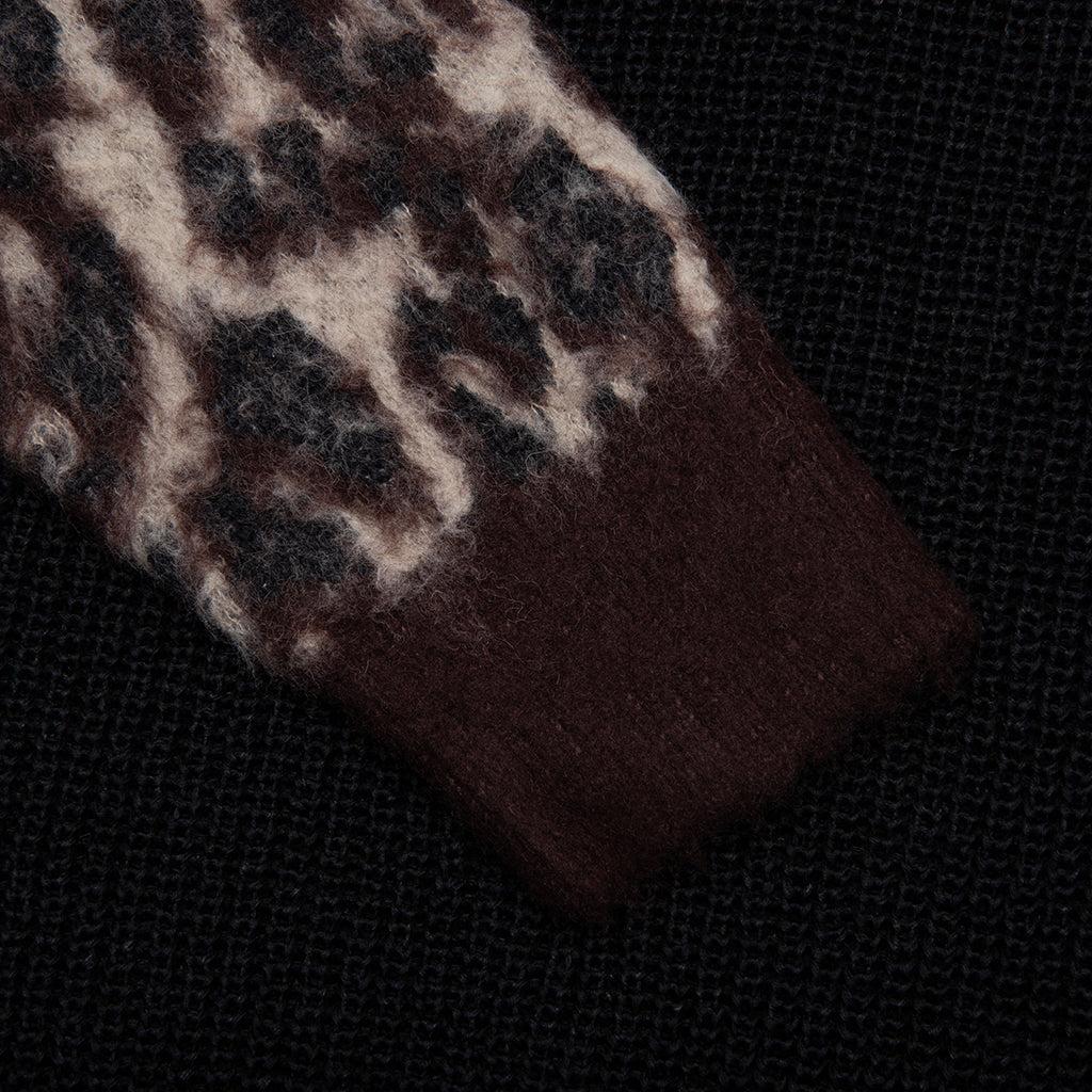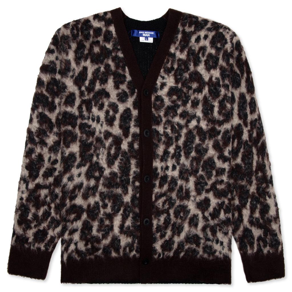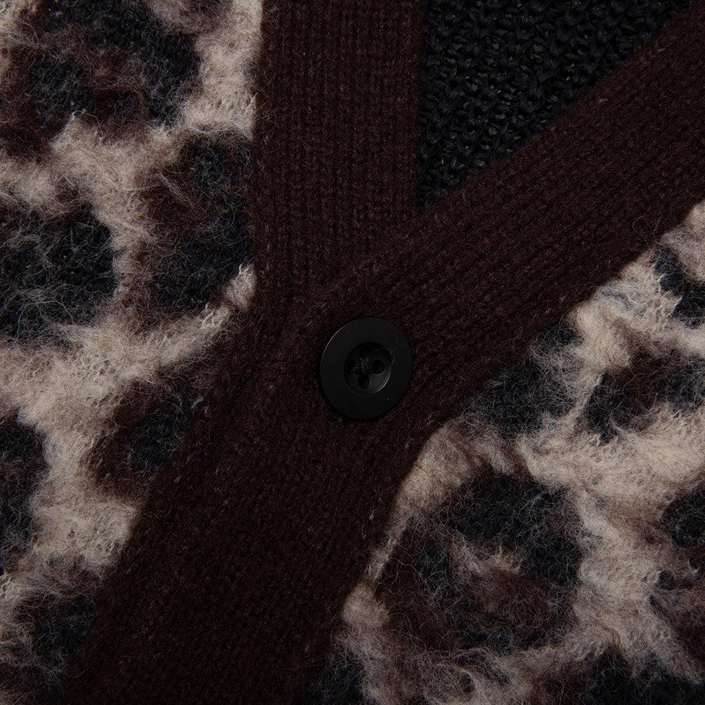 The Junya Watanabe MAN Leopard Cardigan in brown features a striking leopard jacquard pattern. This cardigan has a V-neck and button closure, with dropped shoulders for a relaxed fit. The ribbed hem and cuffs add a touch of classic style. Made in Japan, it's crafted from a blend of acrylic, cotton, nylon, and wool for comfort and durability. 50% Acrylic, 35% Cotton, 10% Nylon, 5% Wool Leopard jacquard pattern V-neck with button closure Dropped shoulders Ribbed hem and cuffs Made in Japan Style No: WM-N006-051-1