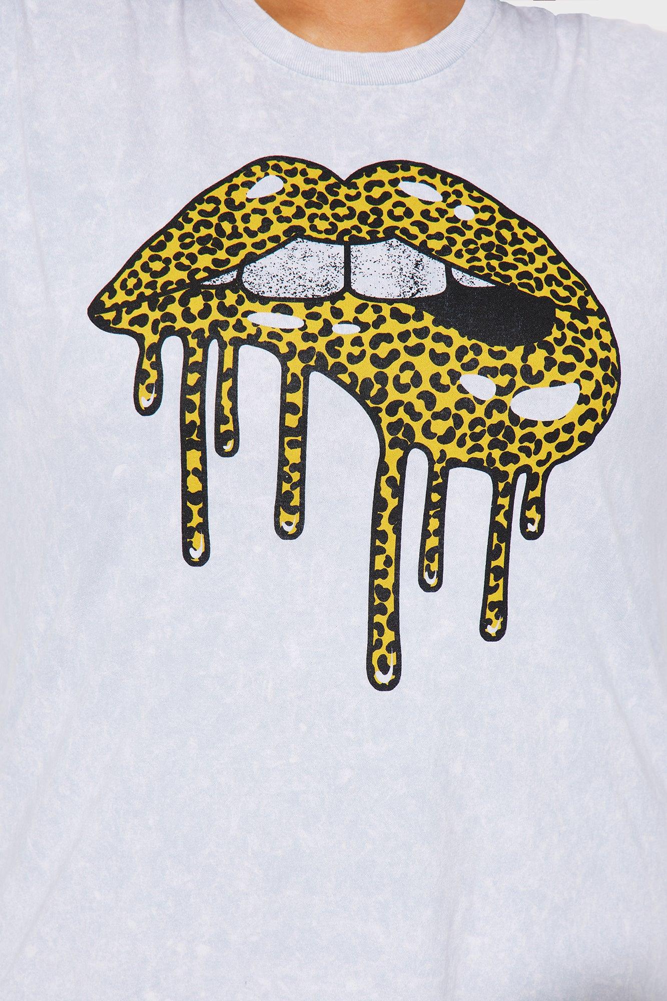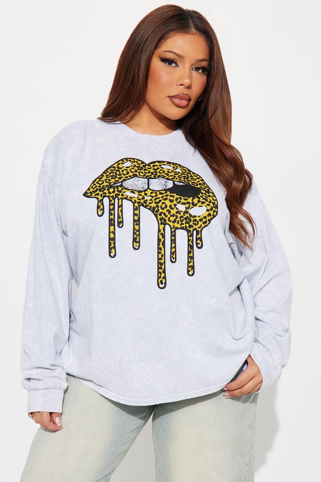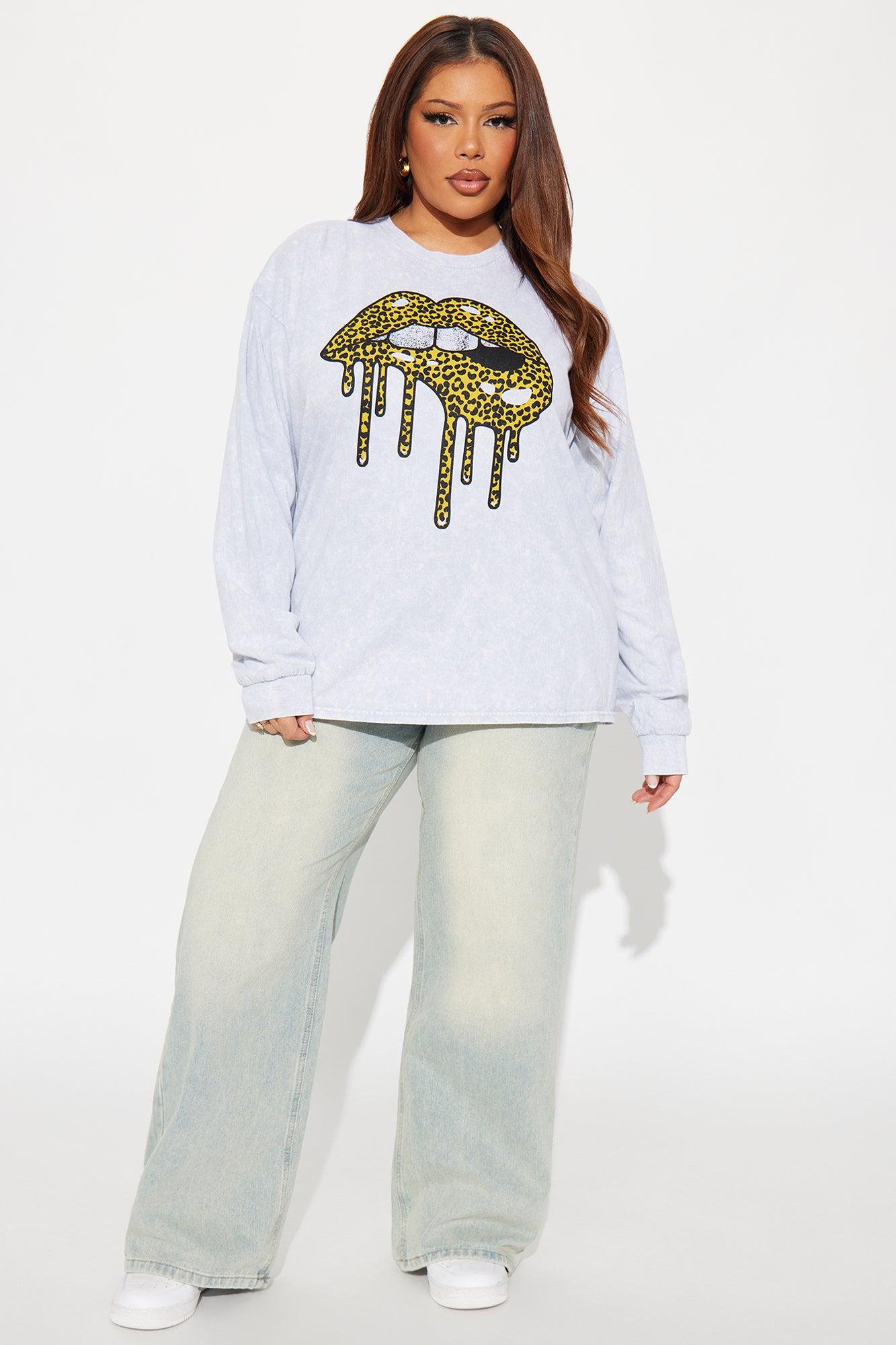 Leopard Lips Washed Oversized Long Sleeve Tee - Grey Female