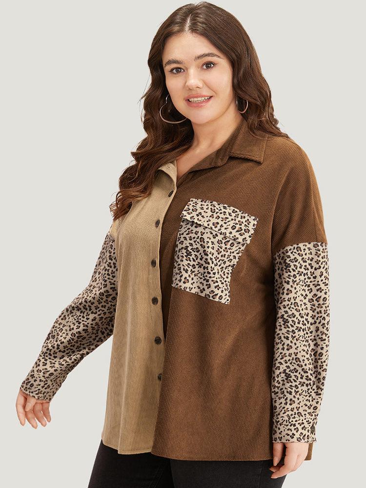 Shop Leopard Patchwork Pocket Contrast Button Through Coat now and redefine your style with confidence at BloomChic. Tailored for mid and plus-size women. This trendy Outerwear Women, sizes 10-30. Season:Fall;Color:DarkBrown;Style:Casual;Pattern Type:Leopard;Details:Patchwork, Pocket, Contrast, Texture, Button;Pocket:It is perfectly sized to carry a phone.;Belt:No-belt;Closure Type:Button;Lining:No-lining
