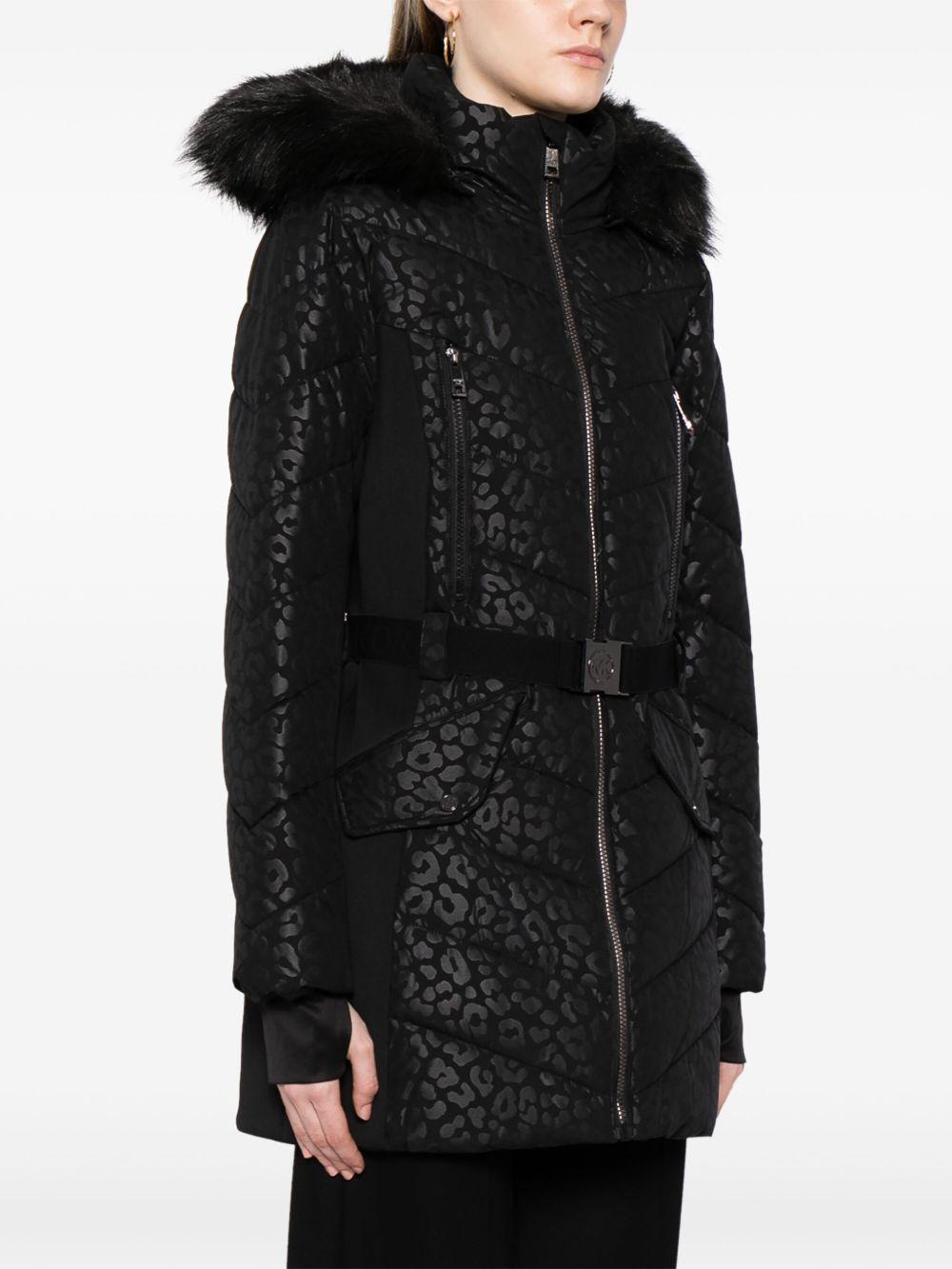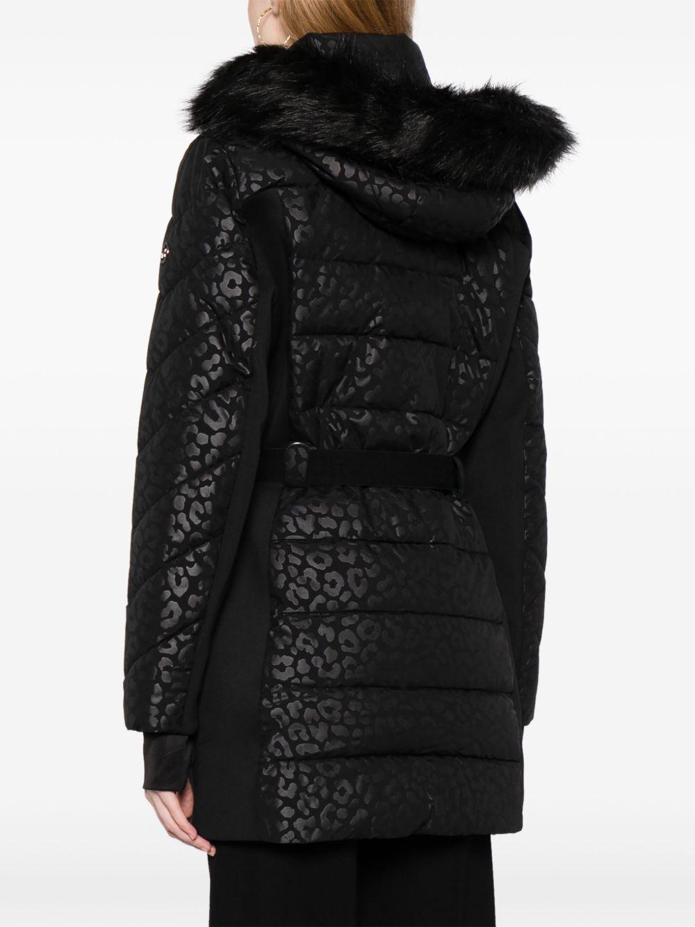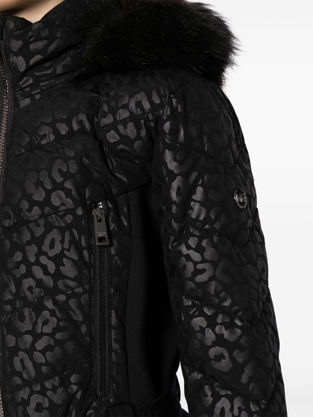 Michael Michael Kors leopard-print puffer coat | Black | black | padded design | tonal design | leopard print | logo plaque | funnel neck | detachable hood | faux fur-trimmed hood | front zip fastening | long sleeves | ribbed cuffs | belted waist | two zip-fastening chest pockets | two press-stud fastening side pockets | straight hem | thigh-length | full lining | Polyester/Polyester/Spandex/Elastane/Polyester/Polyester/Spandex/Elastane/Polyester/Acrylic/Modacrylic | Parkas | Coats | Clothing | Women