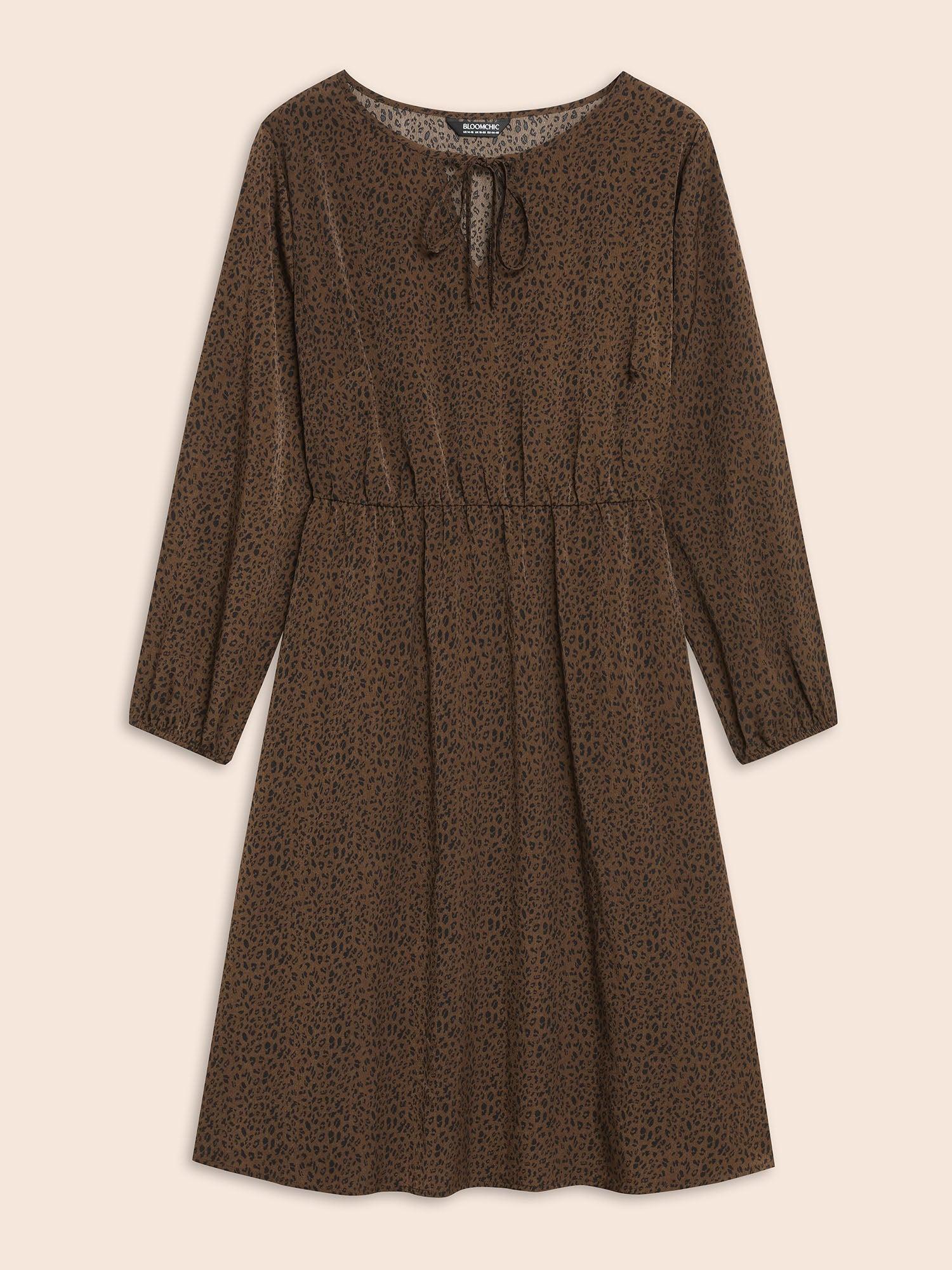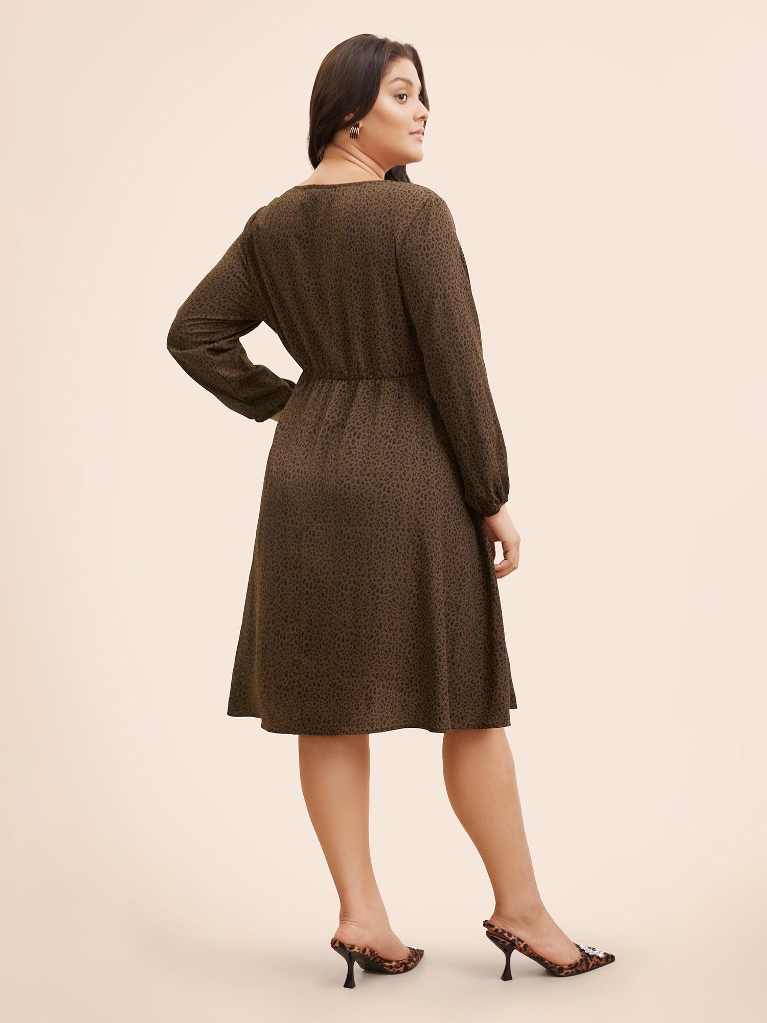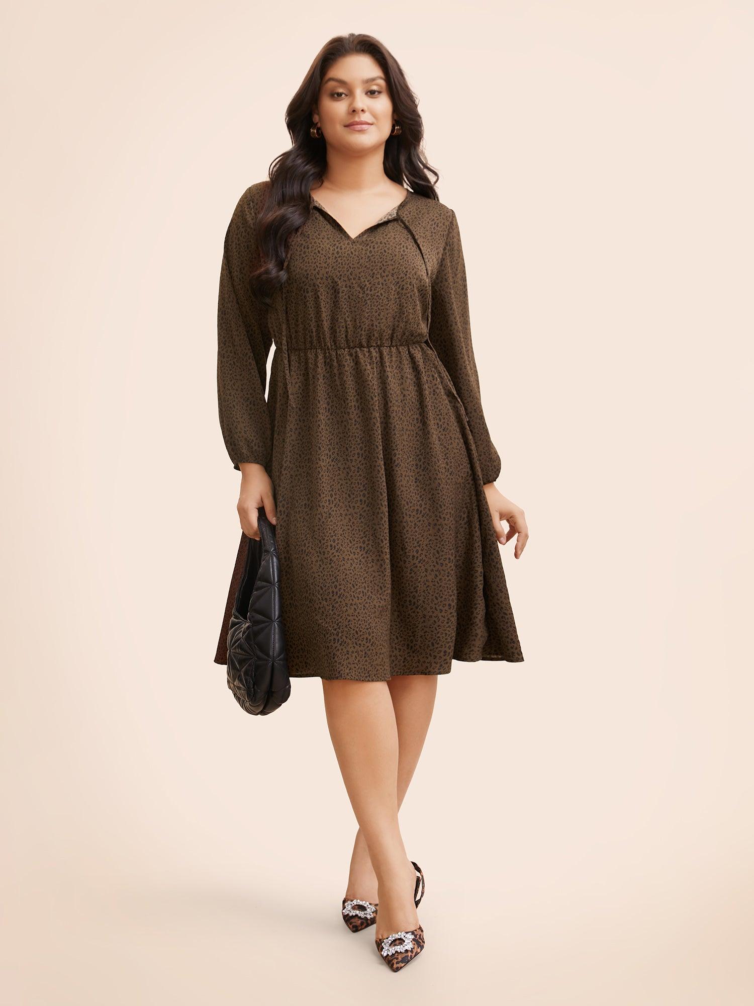 Shop Leopard Print Tie Knot Gathered Dress now and redefine your style with confidence at BloomChic. Tailored for mid and plus-size women. This trendy Dress, sizes 10-30. You can never go wrong with BloomChic Dresses. Season:Winter;Color:Browncoffeecolor;Style:At the Office Work;Neckline:V-neck;Sleeve Type:Elastic cuff;Prints:Animal print;Details:Gathered, Tie knot;Pocket:Side seam pocket;Belt:No-belt;Closure Type:Non