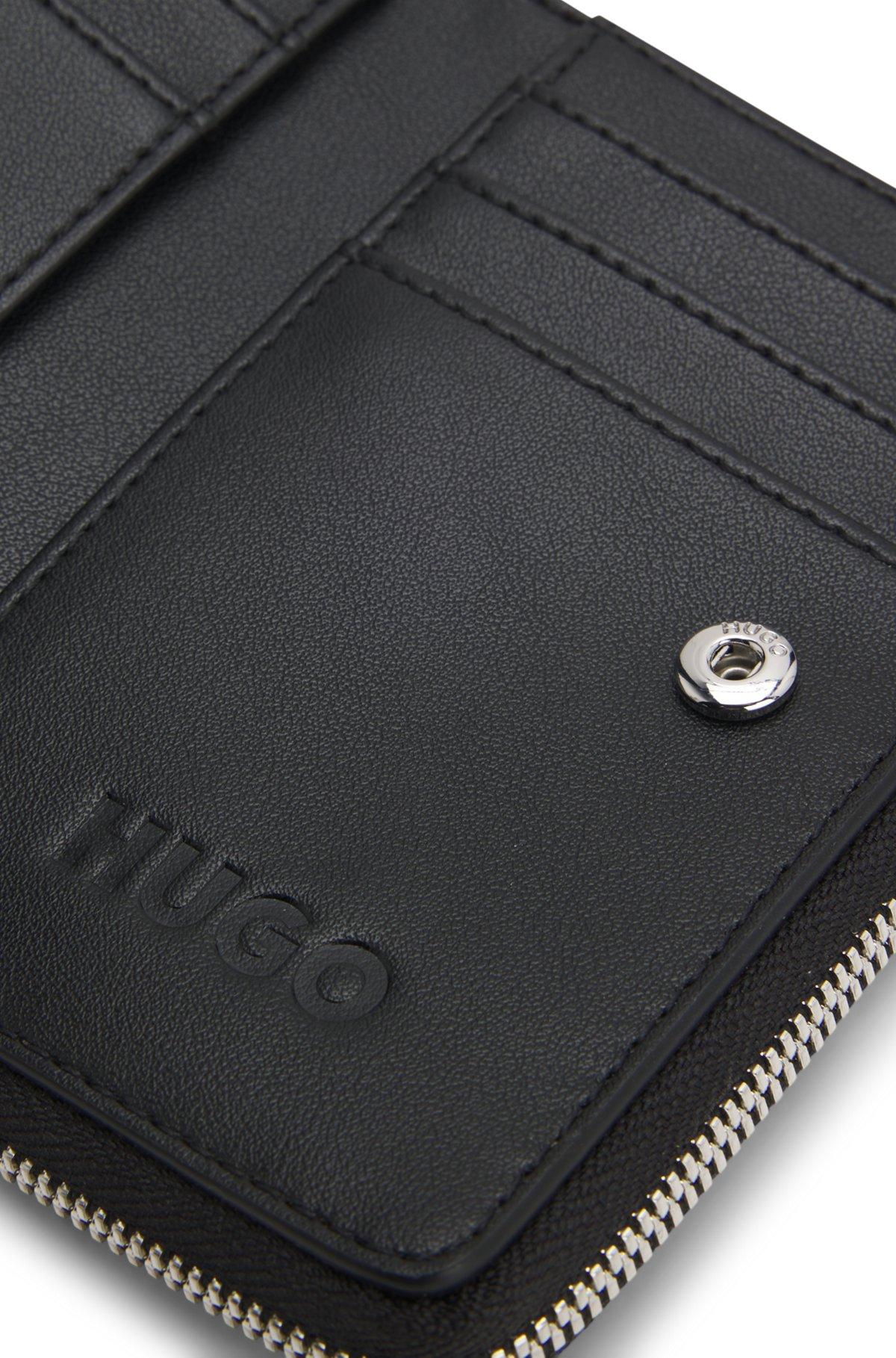 Give your everyday collection some attitude with the leopard print of this HUGO Womenswear wallet. Synthetic coated fabric with stacked-logo trim. Press-stud closure. Synthetic coated fabric, sometimes referred to as faux leather, is a fabric designed to resemble real leather, and/or display a matte, glossy, smooth, or textured, coated appearance. Measurements: 12 x 8 x 2.5cm
