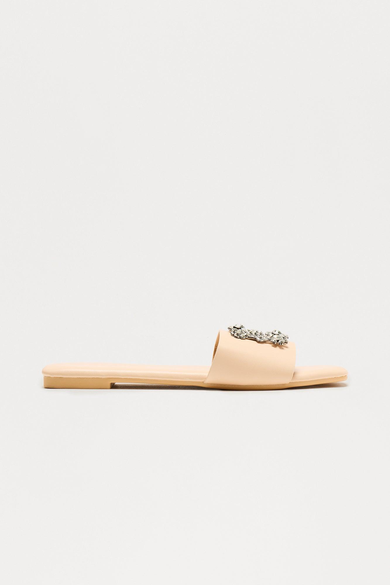 Lerah Rhinestone Slip On Sandals - Beige Female