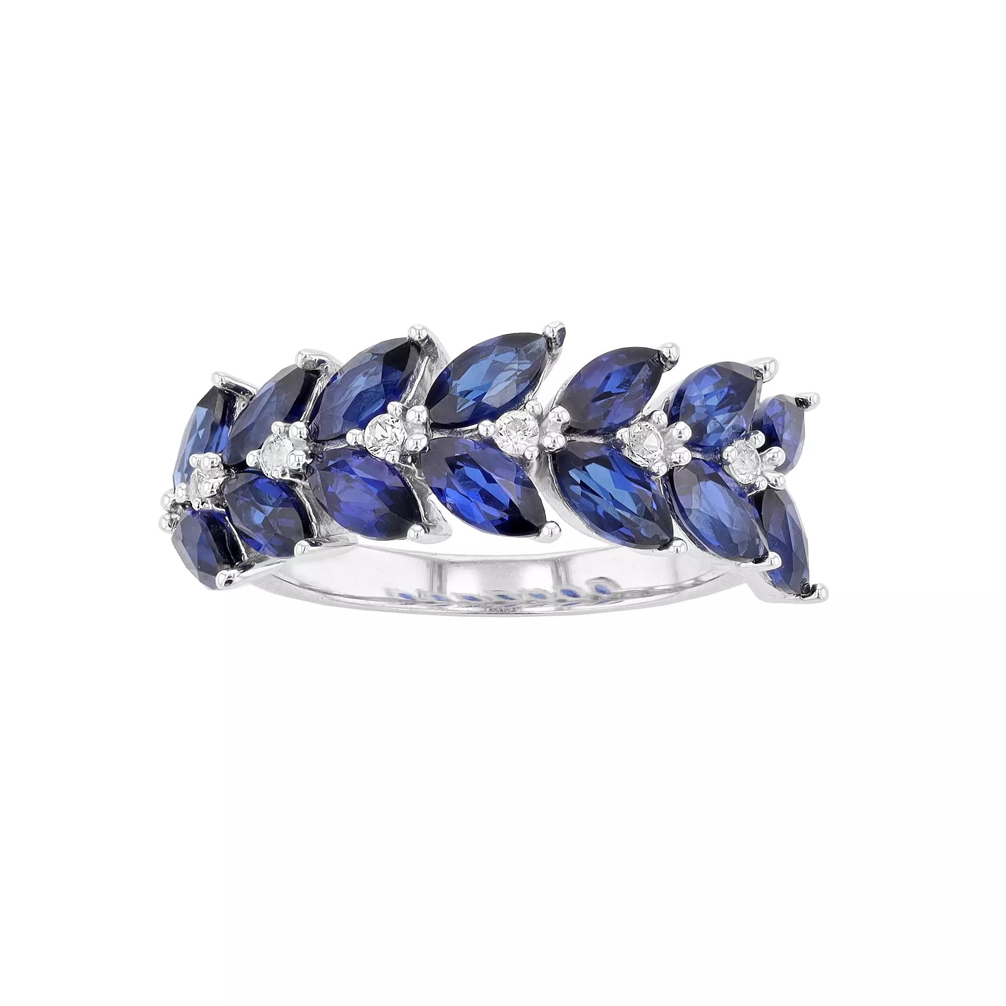Featuring beautiful, lab-created Ceylon sapphire gemstones arranged in a vine motif, this sterling silver ring beautifully accents your look. Featuring beautiful, lab-created Ceylon sapphire gemstones arranged in a vine motif, this sterling silver ring beautifully accents your look. Width: 7.63 mm Metal: sterling silver Plating: rhodium Finish: polished Packaging: boxedSTONE DETAILS Stone type: lab-created Ceylon sapphire, lab-created white sapphire Total weight: 3 ct. Center stone weight: 1/5 ct. Center stone size: 5 mm x 2.5 mm Setting: prong Shape: marquise Gemstones may have been treated to enhance their appearance. Special care may be required. Please visit our Gemstone Treatment & Special Care Guide for more information. Please note, due to the high value of this item, a signature may be required upon delivery. Size: 8. Color: Blue. Gender: female. Age Group: adult.