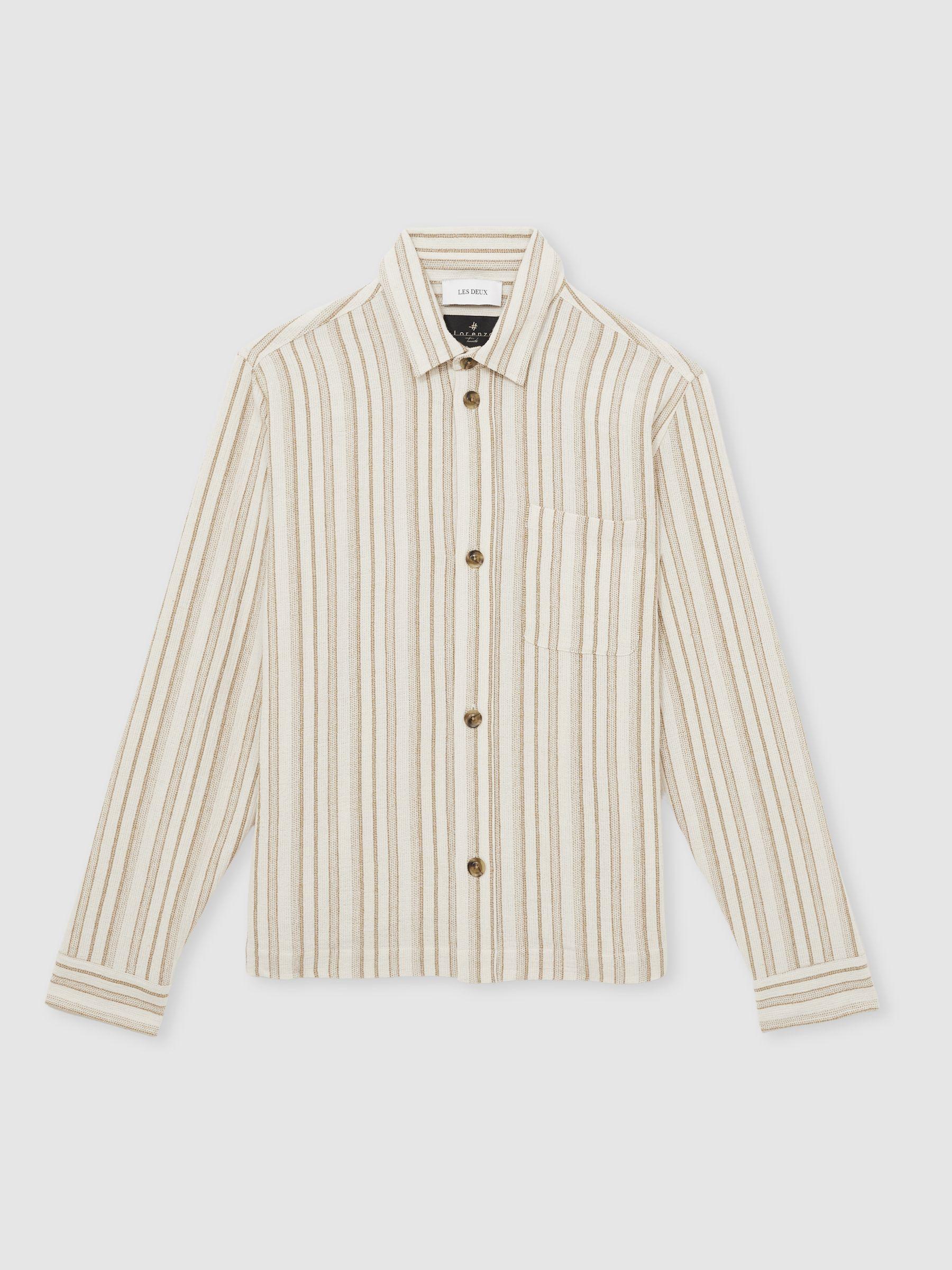 A vintage-inspired stripe and a textured cotton-blend weave bring a retro mood to the Shane overshirt. Tortoiseshell-effect buttons enhance its unique look, whilst a patch pocket at the chest is a functional touch. Cotton-blend. Woven retro stripe. Classic collar. Chest patch pocket. Front buttons. Les Deux, curated by Reiss, is a Copenhagen-based menswear brand encapsulating the two contrasting style identities of its founder – preppy and urban, creative and entrepreneurial.
