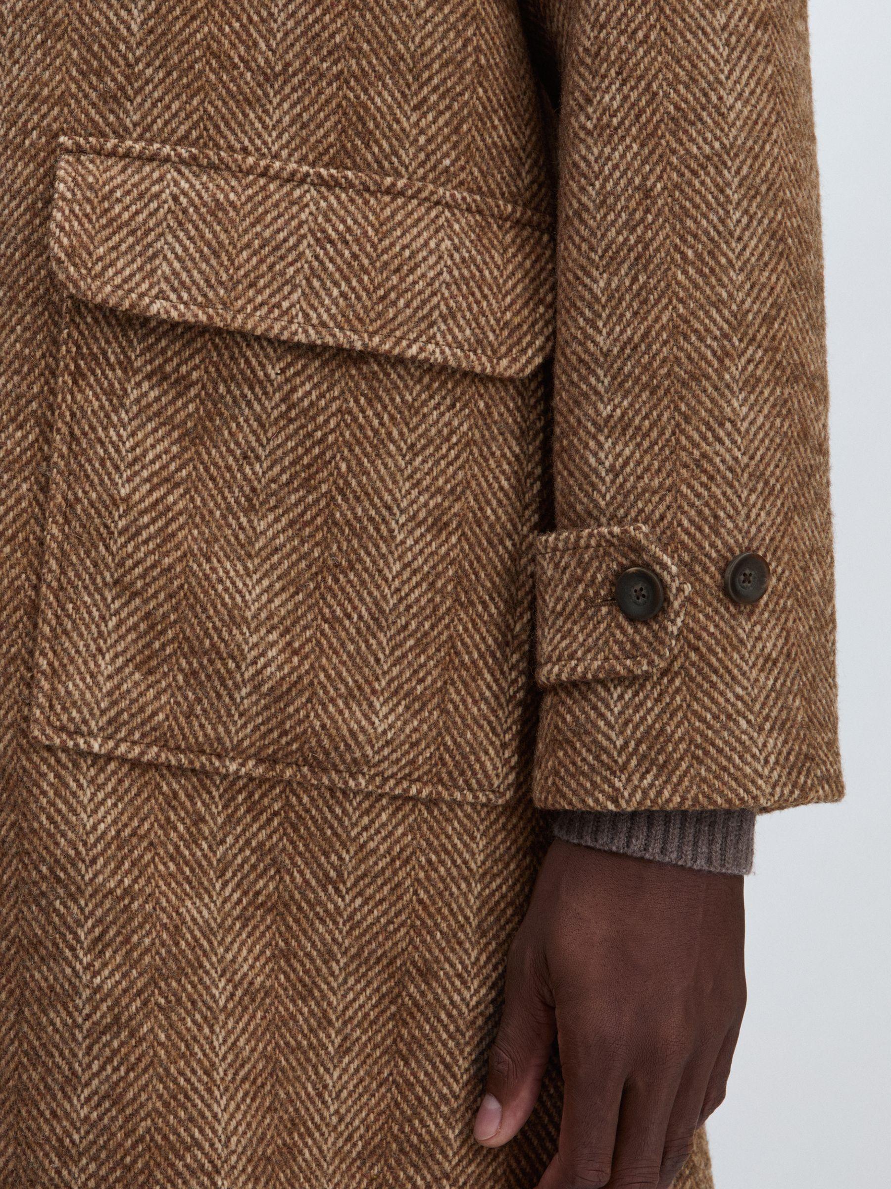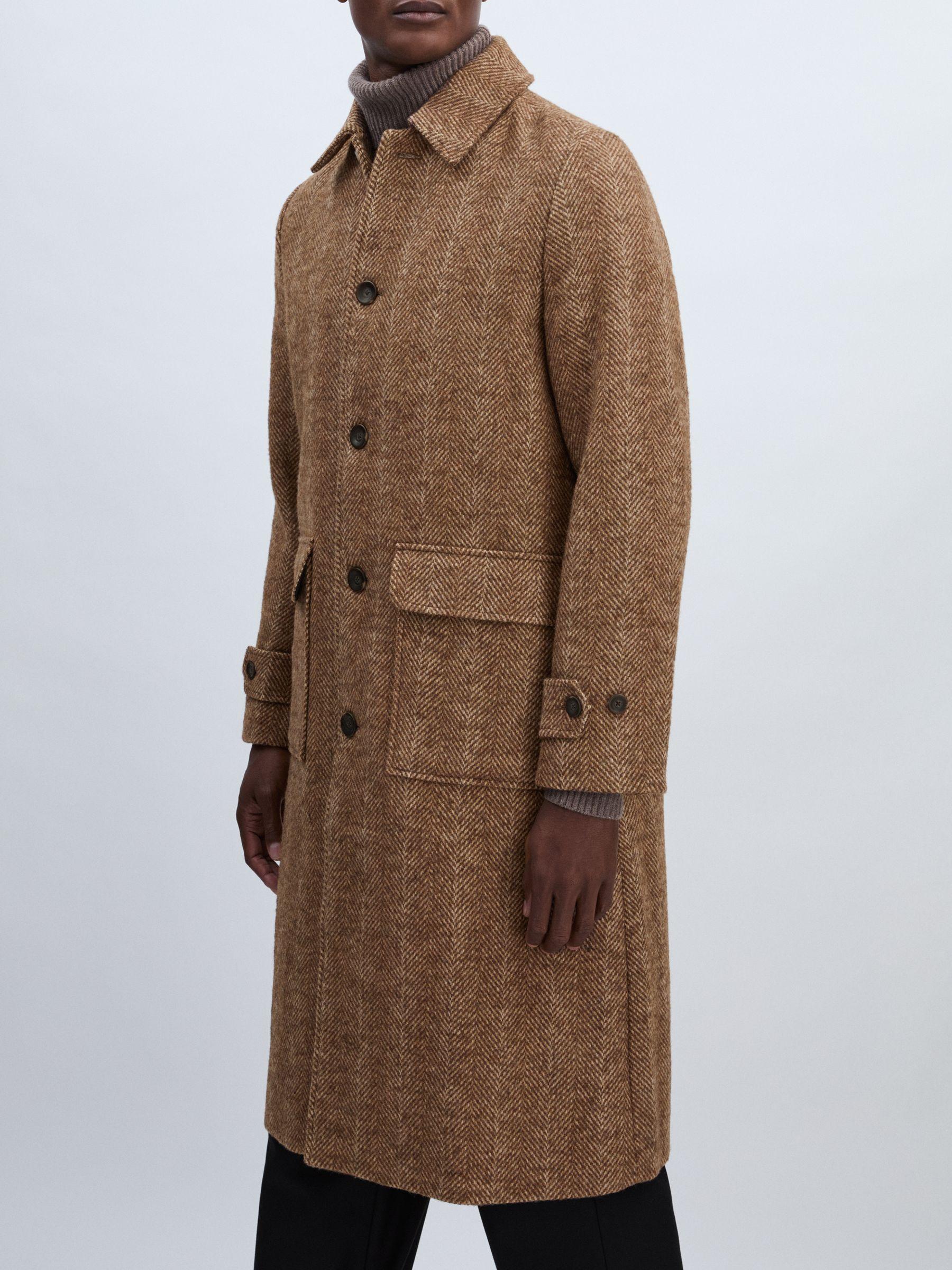 The woven herringbone pattern lends a timeless heritage feel to the Maximilian coat, crafted from heavyweight wool-blend tweed. Flap patch pockets enhance functionality, whilst adjustable button-tab cuffs provide a tailored fit, making the style both stylish and practical. Heavyweight wool-blend tweed. Herringbone Classic collar. Flap patch pockets. Adjustable button-tab cuffs. Single vent to reverse. Front buttons Les Deux, curated by Reiss, is a Copenhagen-based menswear brand encapsulating the two contrasting style identities of it's founder – preppy and urban, creative and entrepreneurial.