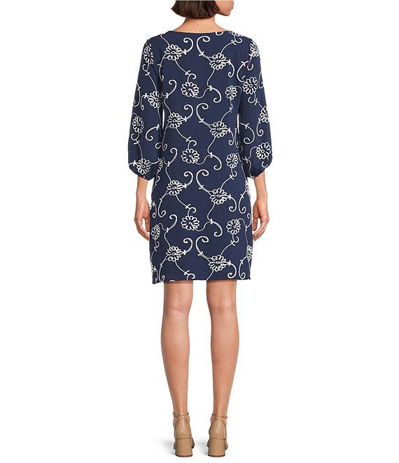 Leslie Fay Floral Print Scoop Neck Bubble 3/4 Sleeve Pleated Front Dress