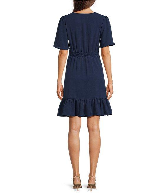 Leslie Fay V-Neck Short Sleeve Fit and Flare Dress