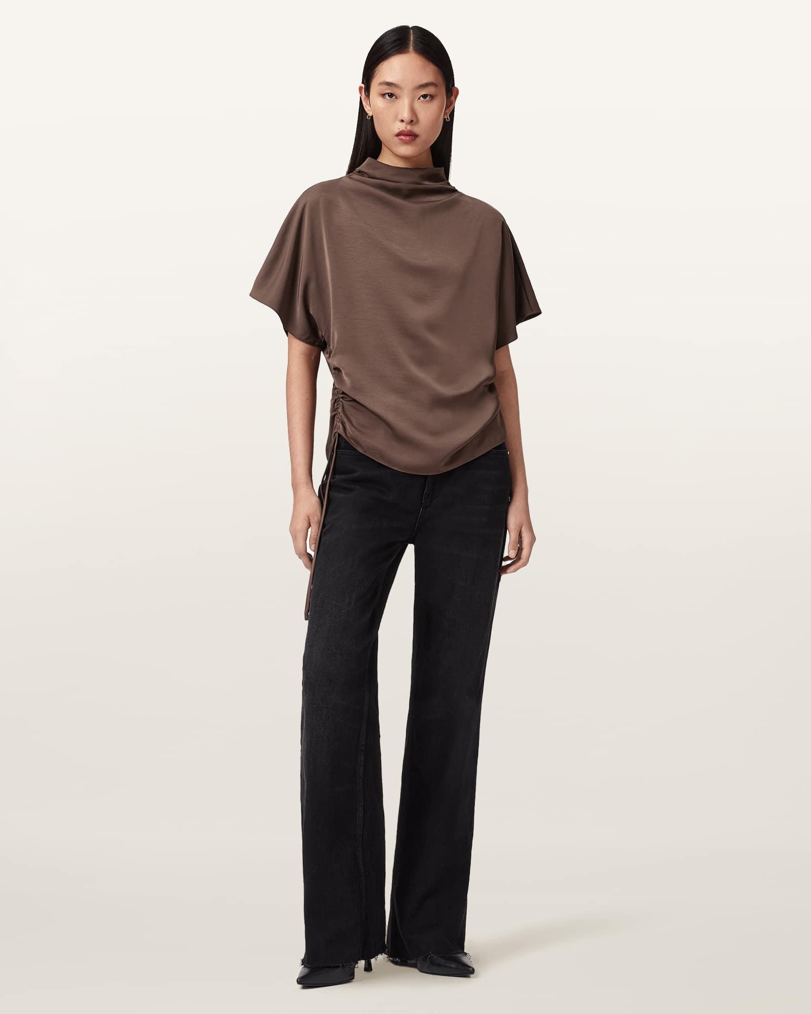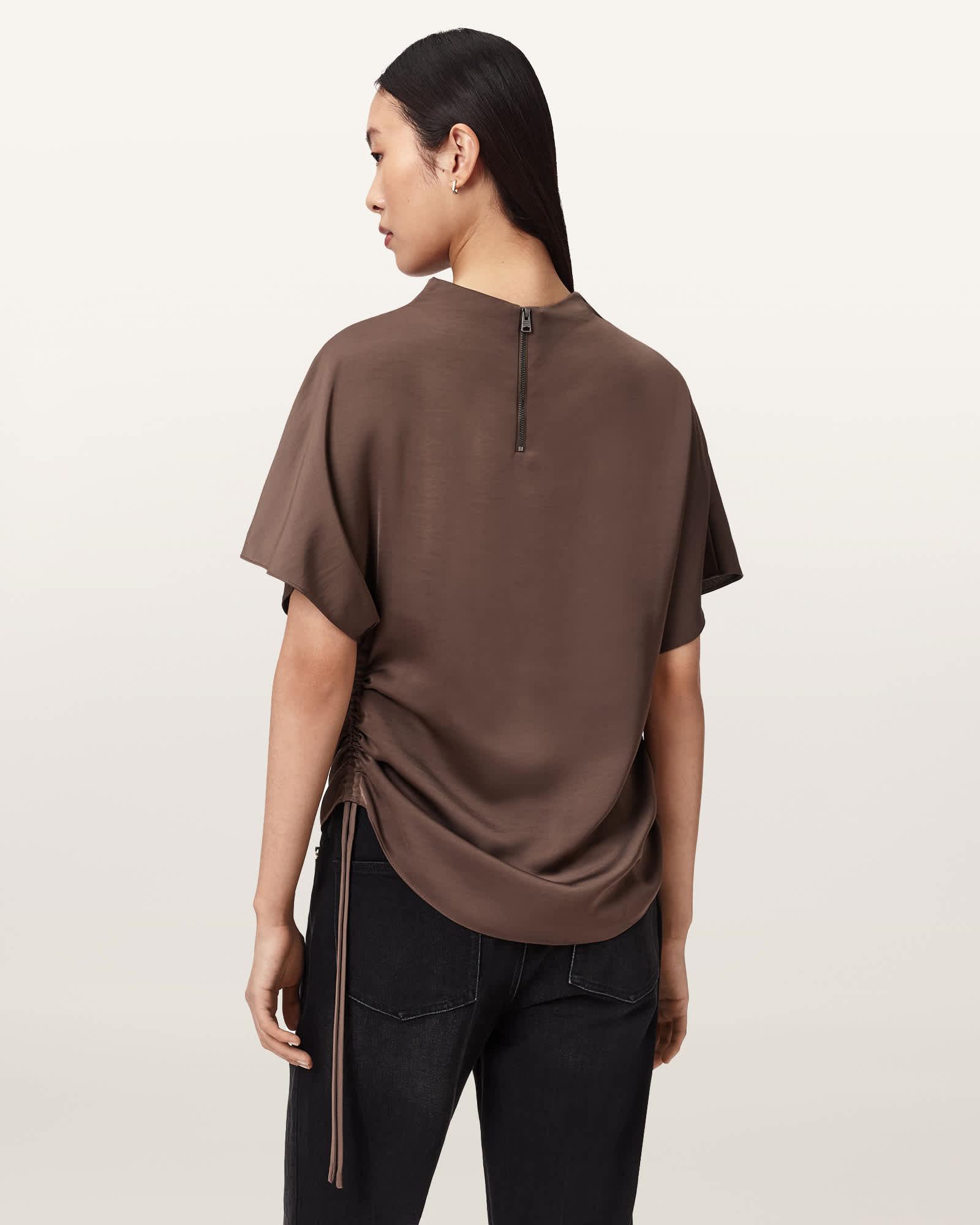 Leslie Satin Short Sleeve Top POT BROWN | ALLSAINTS US