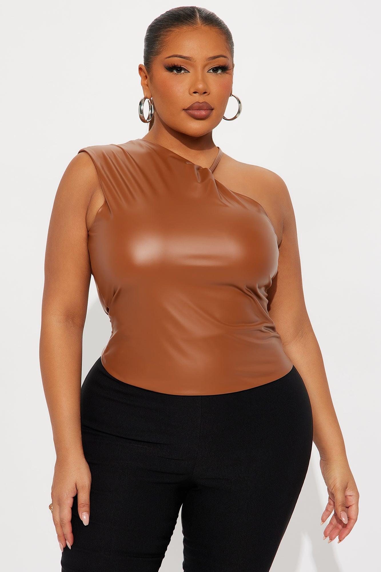 Lesson Learned High Neck Faux Leather Top - Mocha Female