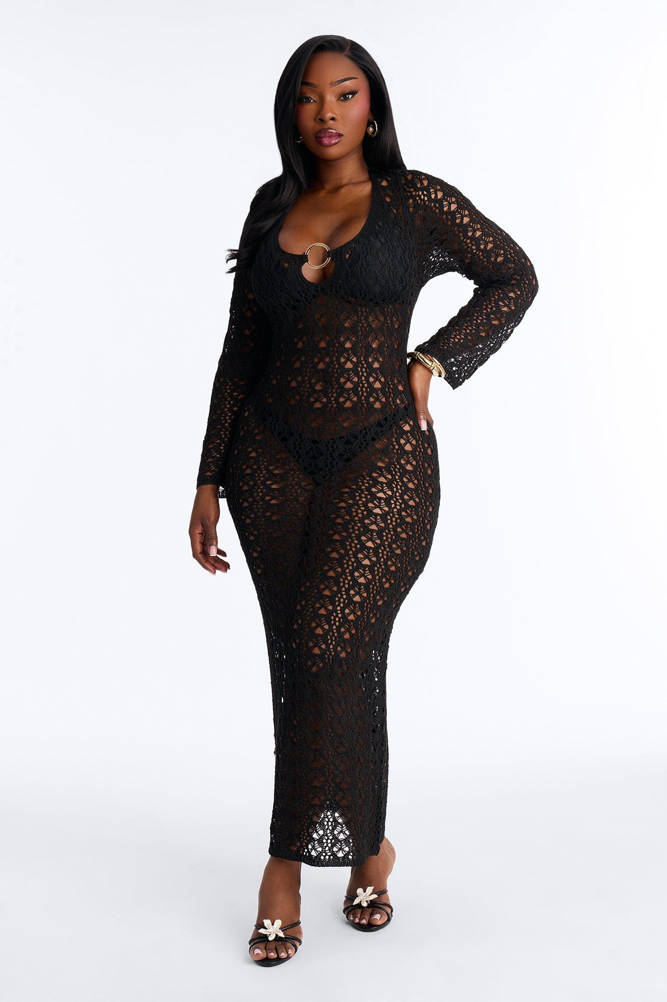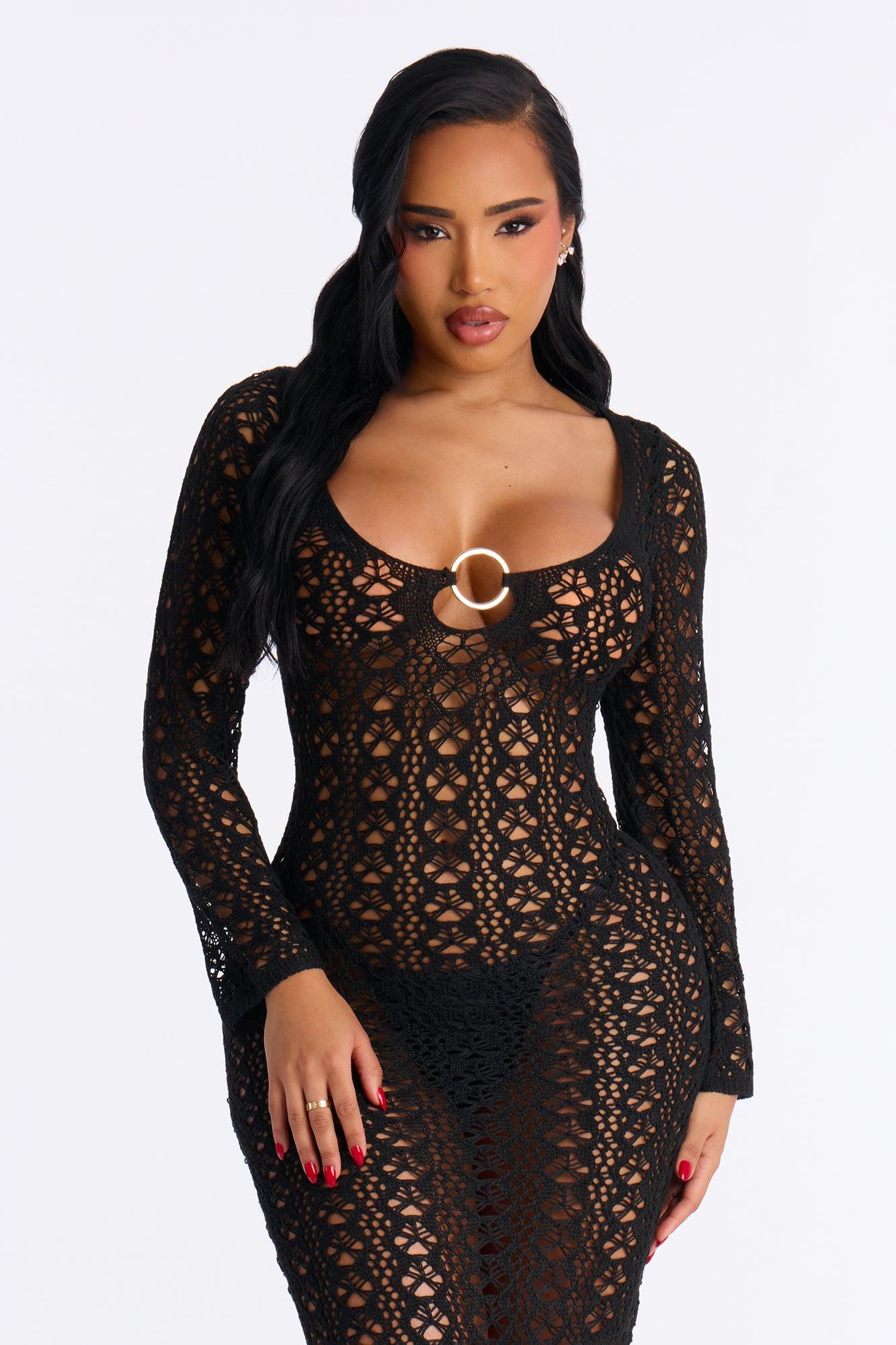Let Me Think About It Long Sleeve Coverup - Black Female