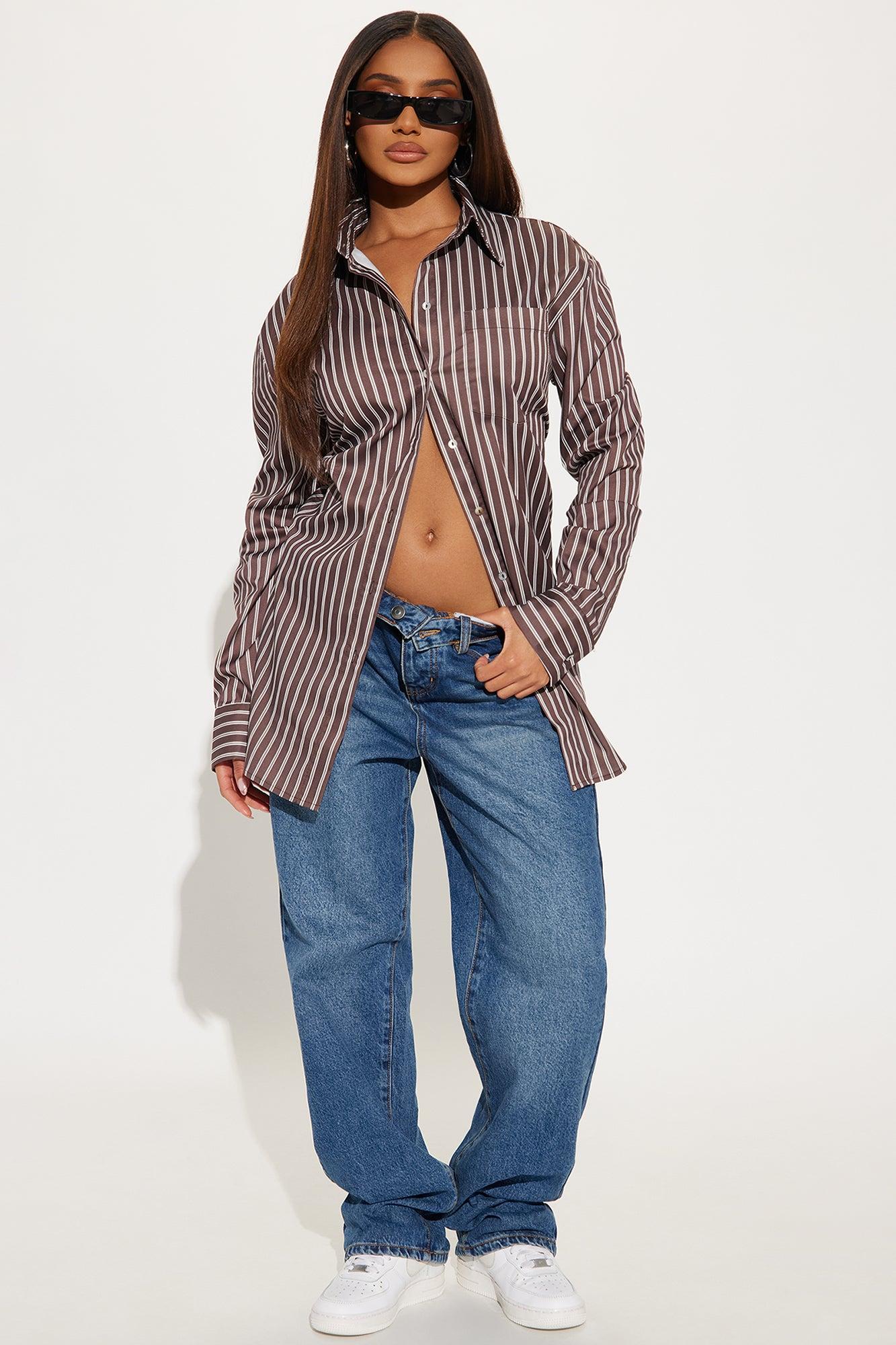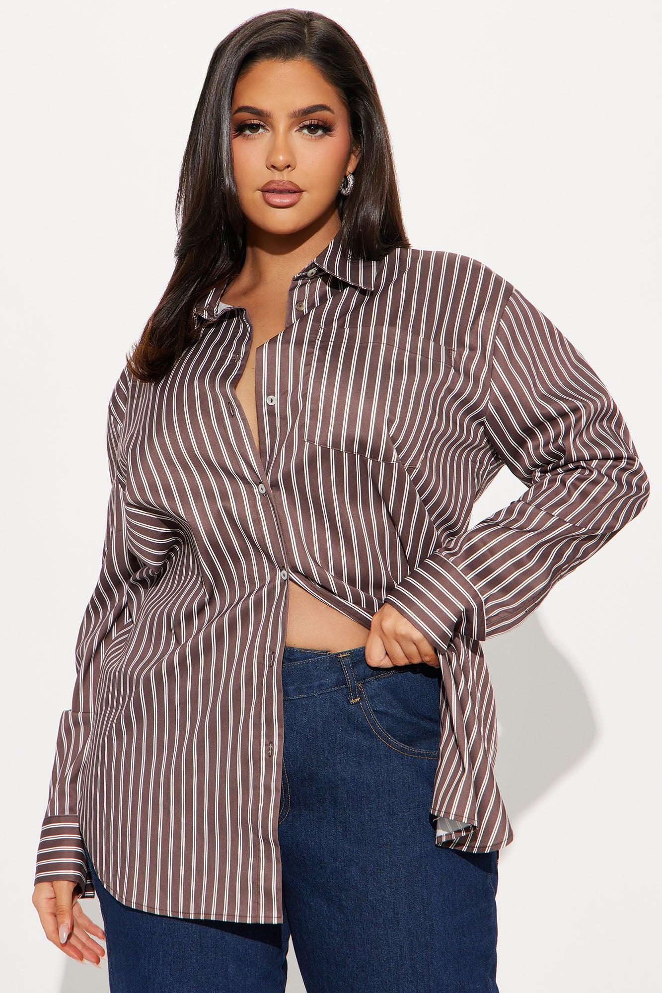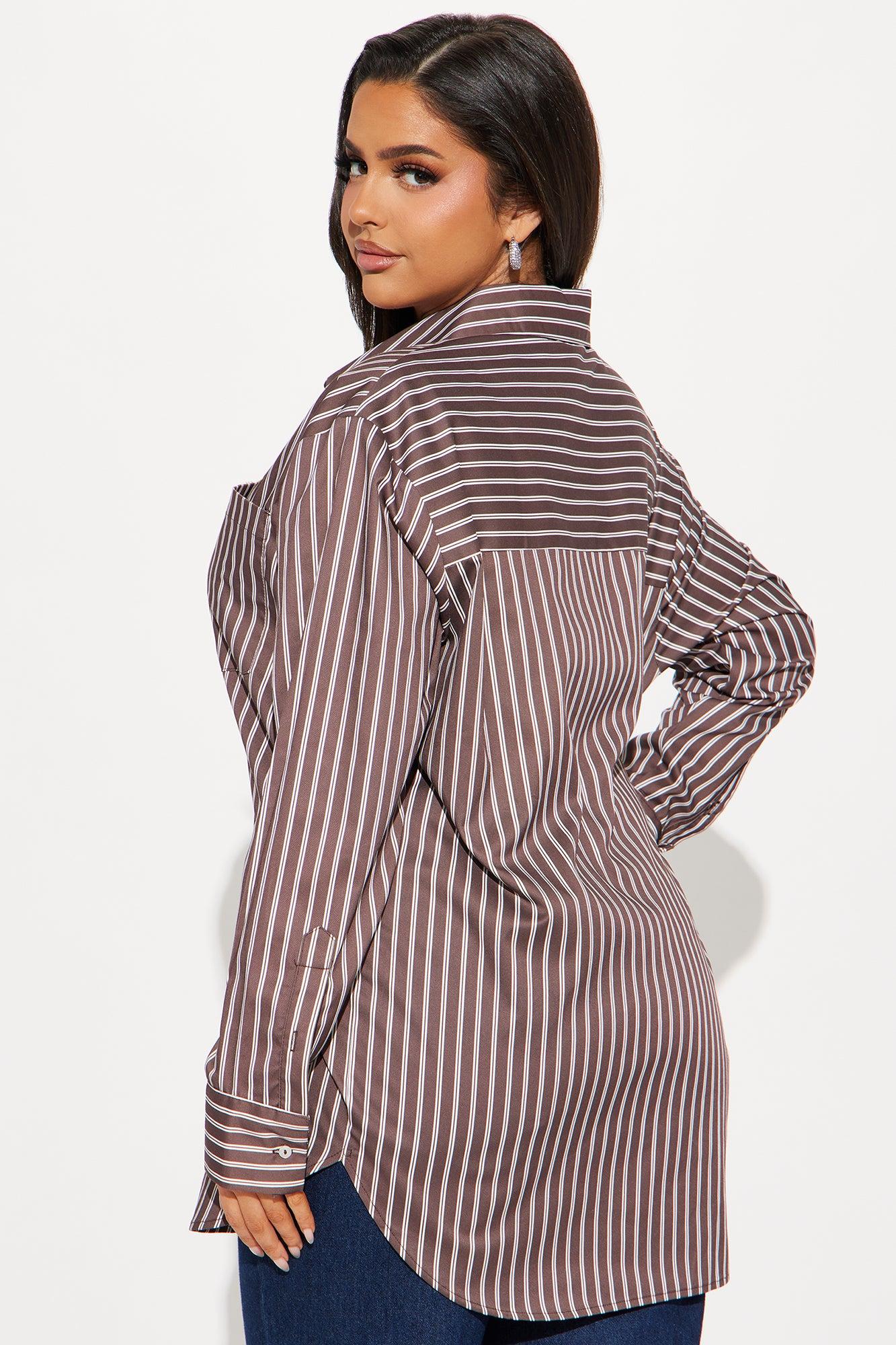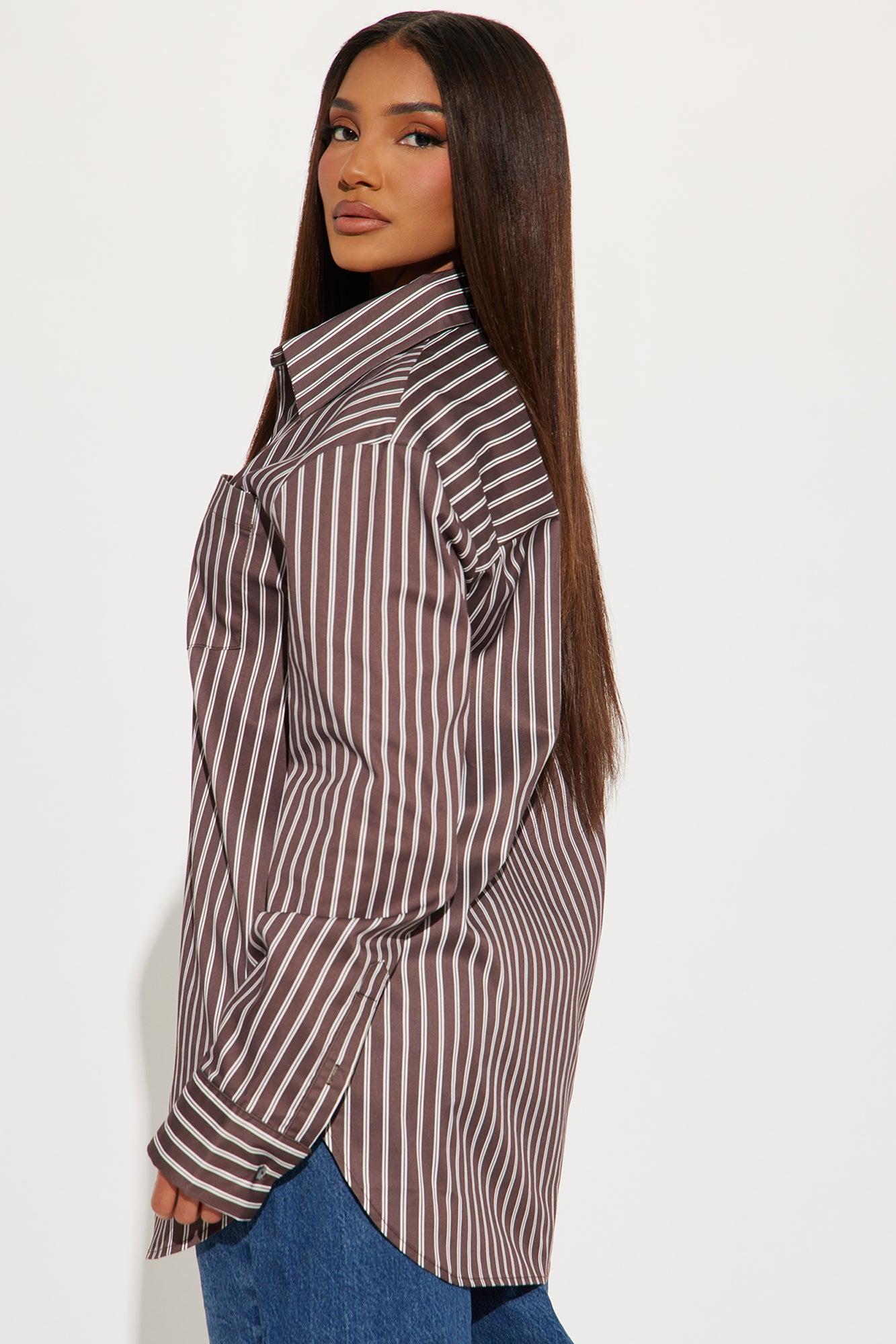 Let's Chat Oversized Striped Shirt - Chocolate/Combo