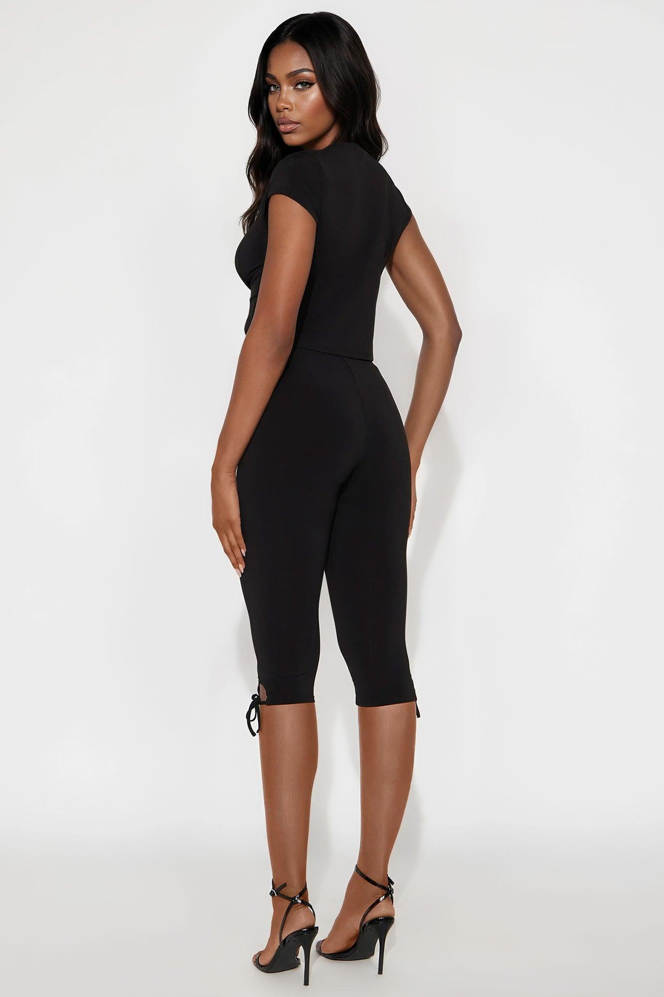Let's Chat Tie Front Capri Set - Black Female