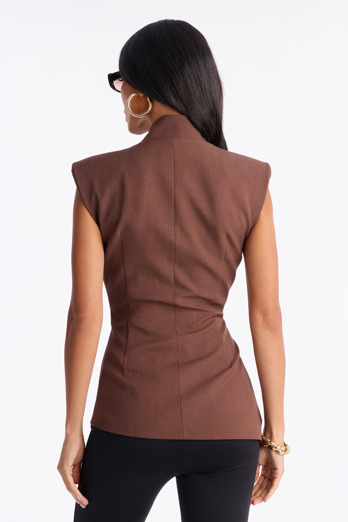 Let's Get Going Shoulder Pads Pleated Top - Brown Female