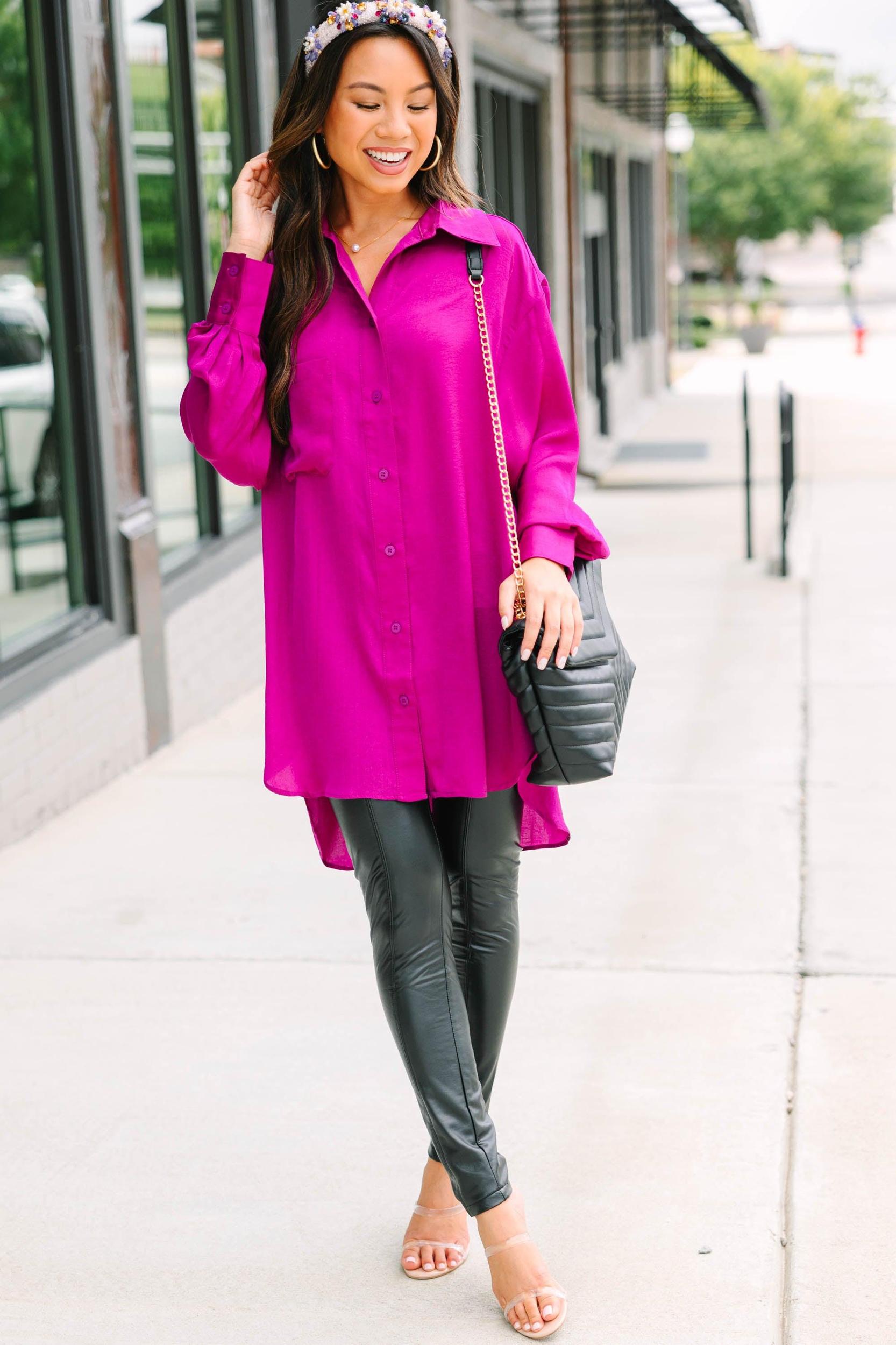These leggings are definitely loud and proud! They are so sassy and oh so chic! That faux leather fabric has the perfect sheen. These leggings are going to look so fab with knit sweaters, cozy sweatshirts, or even dressy tunic blouses! These leggings features a shiny faux leather fabric, faux pockets, and an elastic waistband. Material has a fair amount of stretch.Cindy is wearing the small.