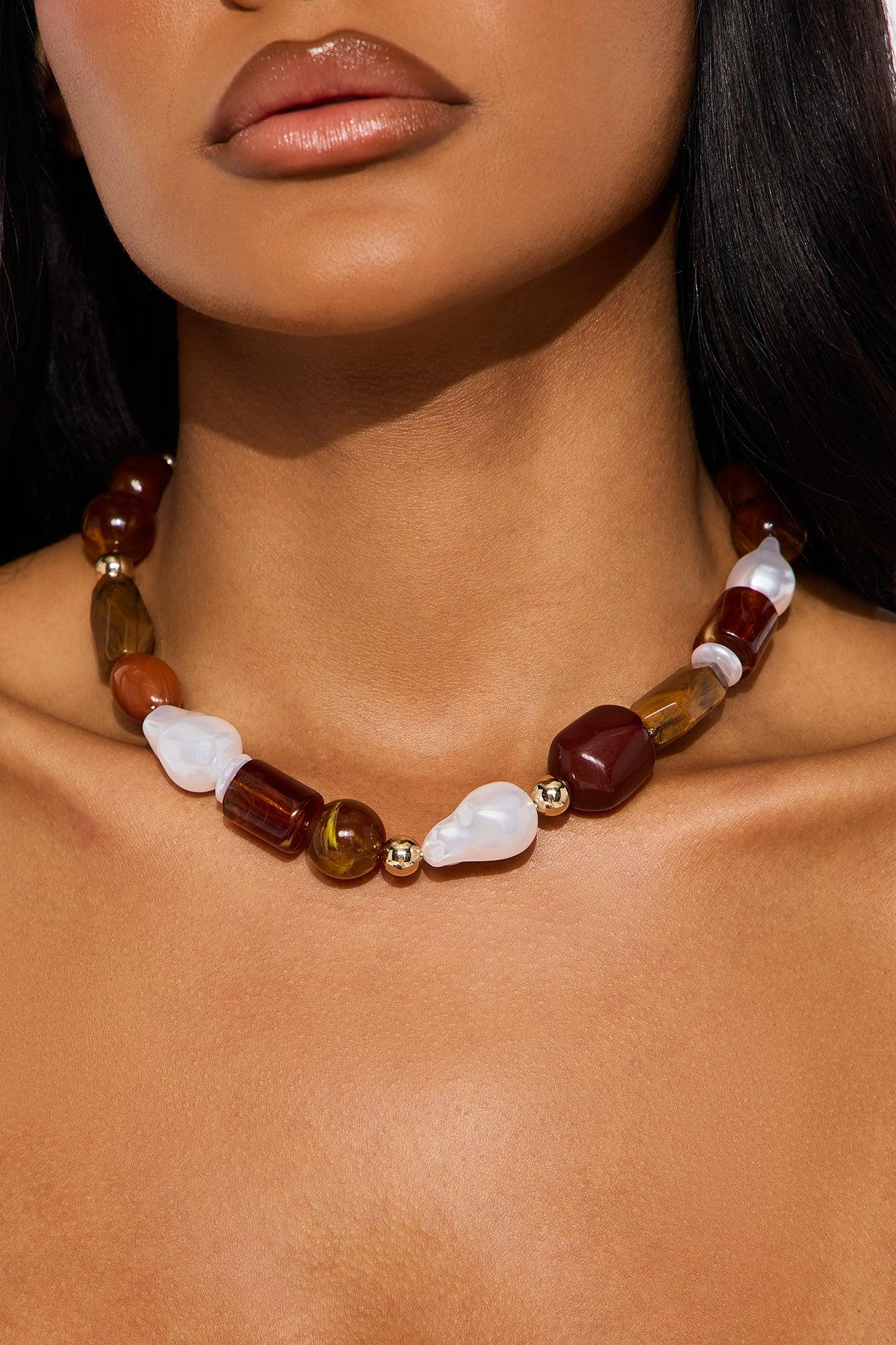 Let's Talk About It Jewel Necklace - Brown/combo Female